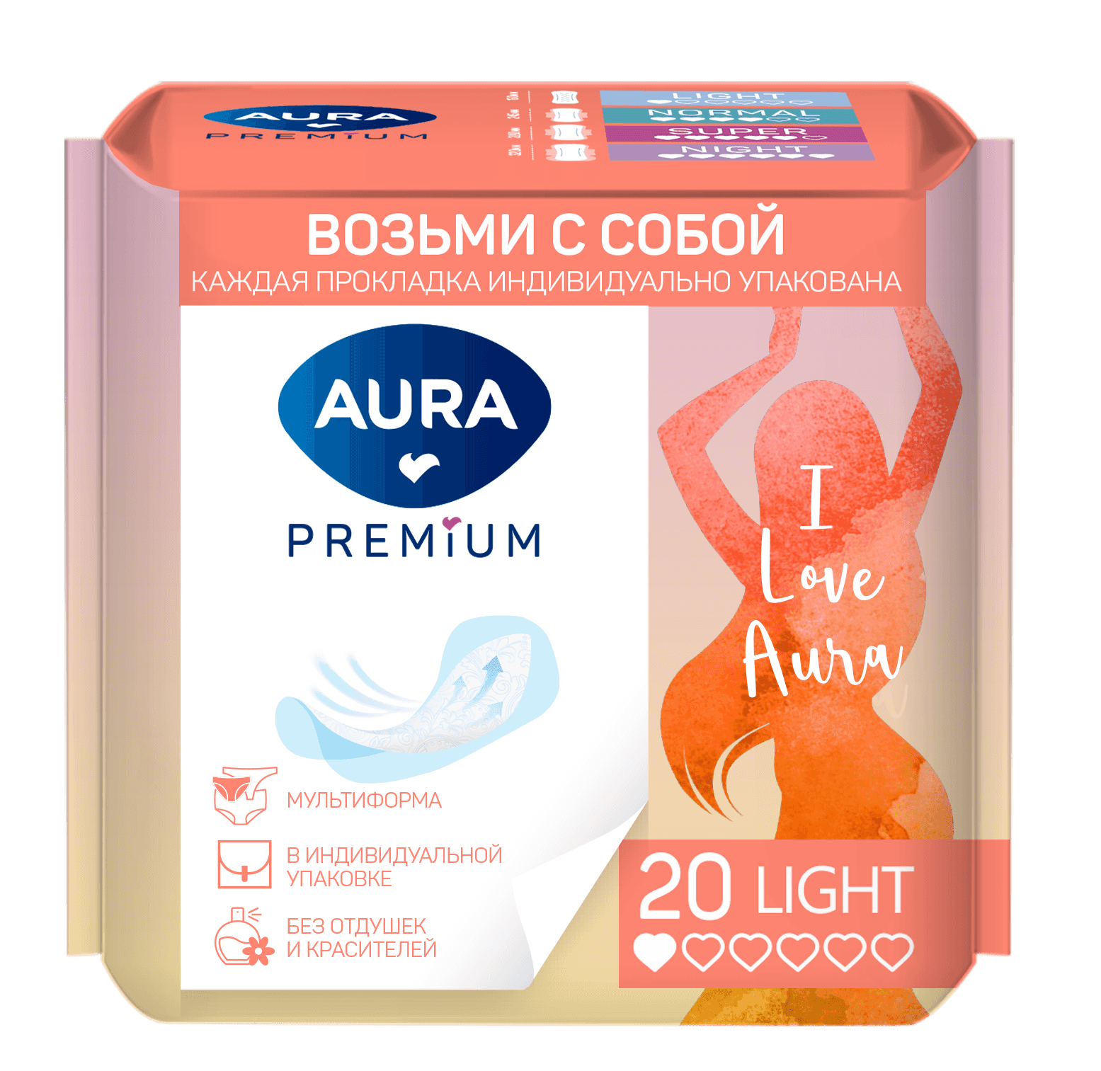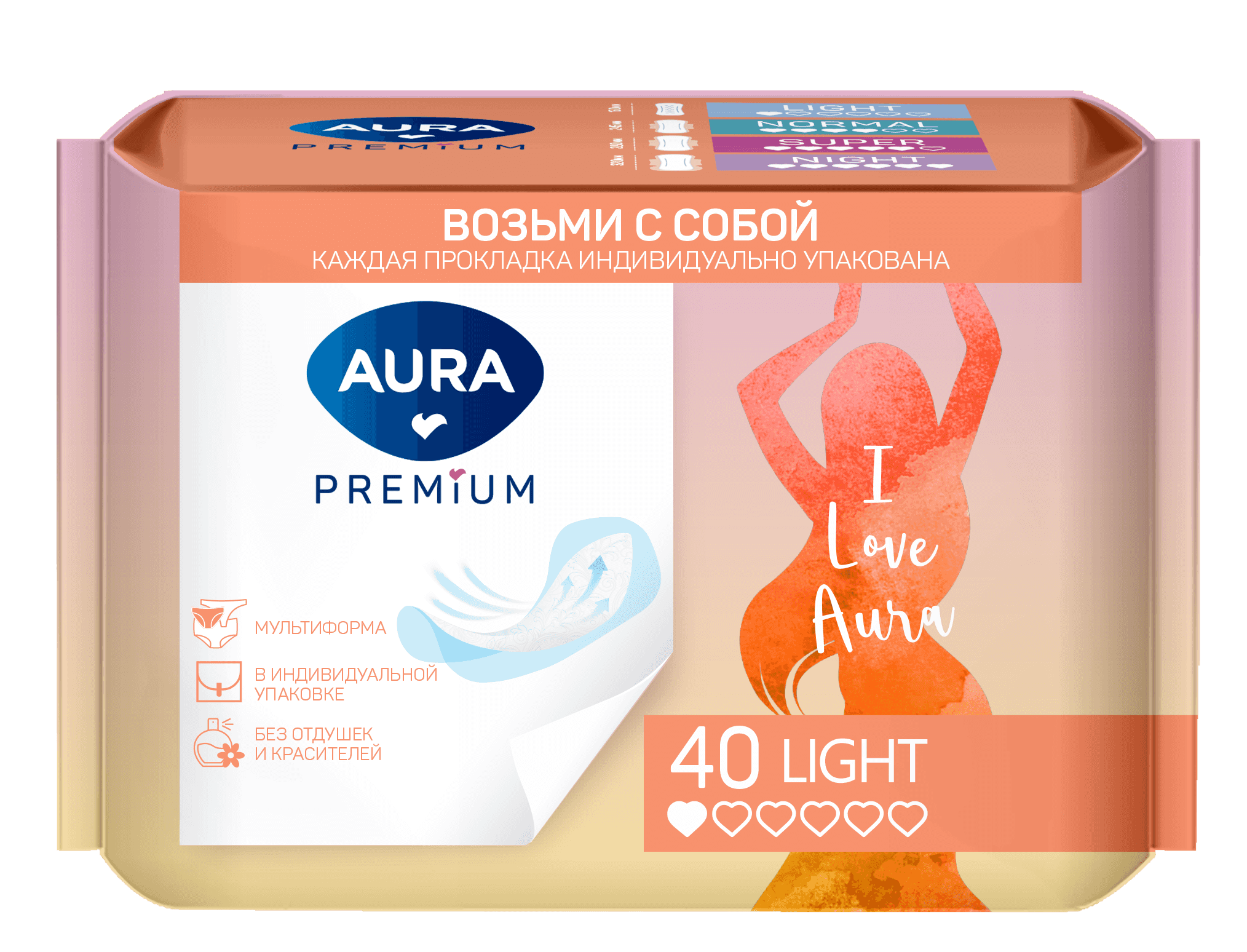 AURA PREMIUM Прокладки женские ежедневные ультратонкие LIGHT 40шт /24