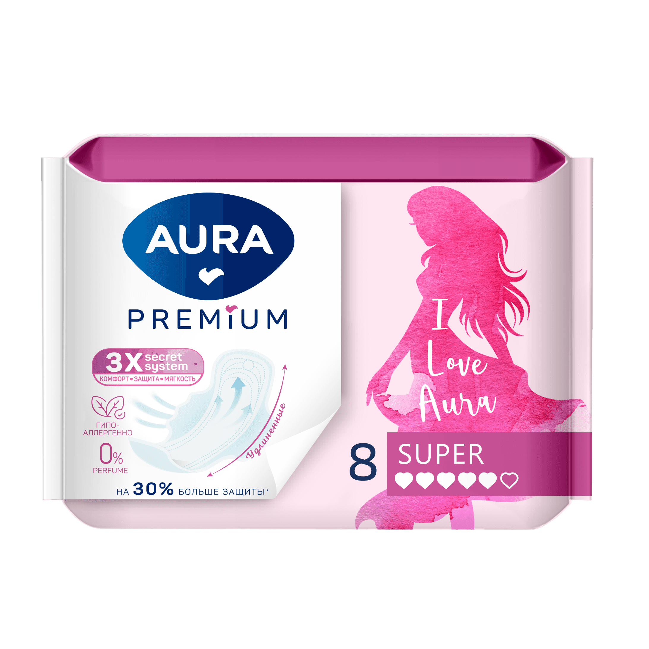 AURA PREMIUM Прокладки женские гигиенические SUPER 8шт /24
