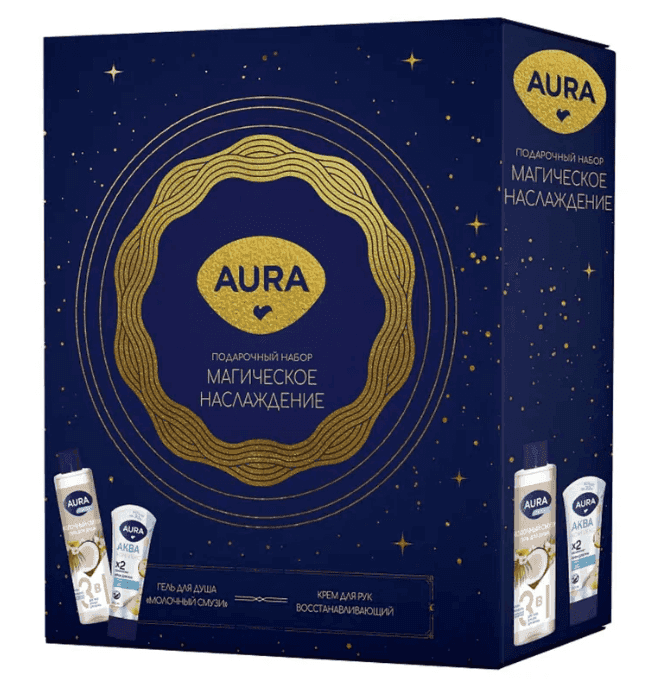 AURA Подарочный набор Магическое наслаждение, гель-душ Молочный смузи 250мл + крем для рук вост.75мл