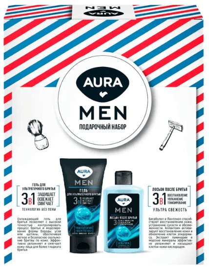 AURA MEN Подарочный набор, гель для бритья 150мл + лосьон после бритья 150мл