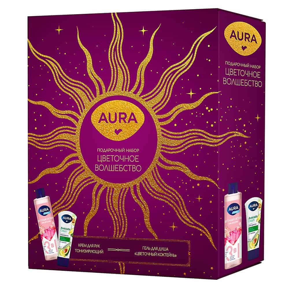 AURA Подарочный набор Цветочное волшебство, гель-душа Цветочный коктейль 250мл + крем для рук тониз.
