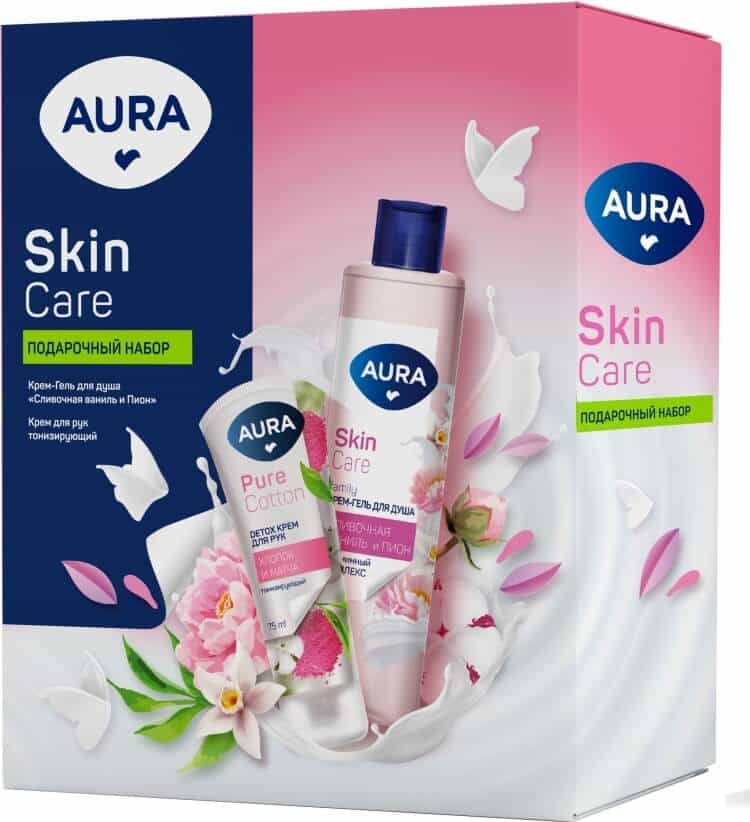 AURA набор SKIN CARE: крем-гель для душа Сливочная ваниль/пион 250мл + Detox крем руки 75мл