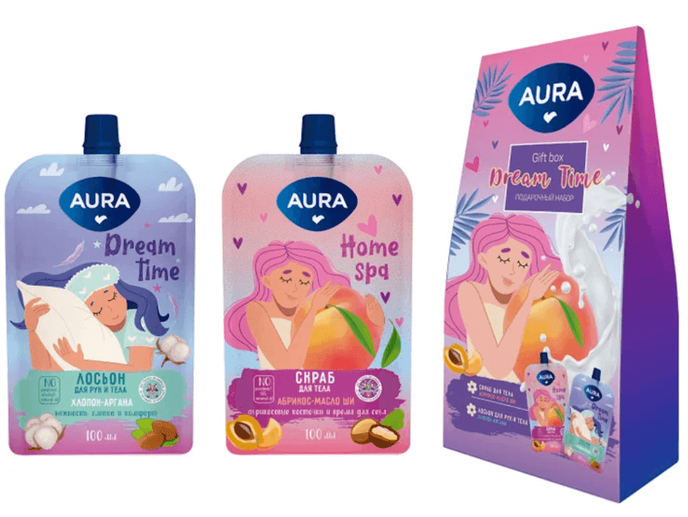 AURA набор DREAM TIME: скраб для тела Абрикос/масло Ши 100мл + Лосьон для рук и тела 100мл