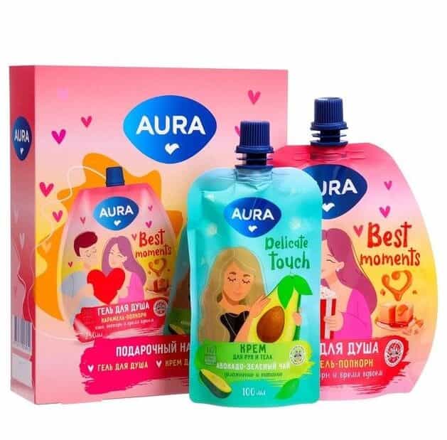 AURA набор Карамель и Авокадо: гель для душа Карамель/попкорн 250мл + крем для рук 100мл