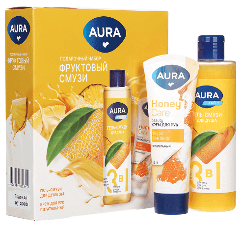AURA набор Фруктовый смузи: гель-смузи для душа 3в1 250мл + крем руки D-пант/мед 75мл