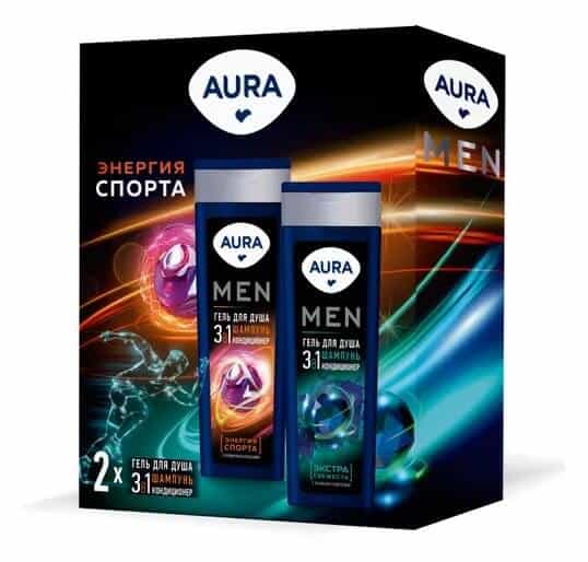 AURA MEN набор Энергия спорта: гель-душ 3в1 250мл + гель-душ 3в1 Экстра Свежесть 250мл