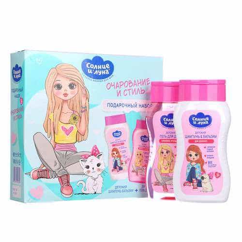 СОЛНЦЕ И ЛУНА набор для девочек 3+: шампунь-бальзам 200мл + гель-душ 200мл
