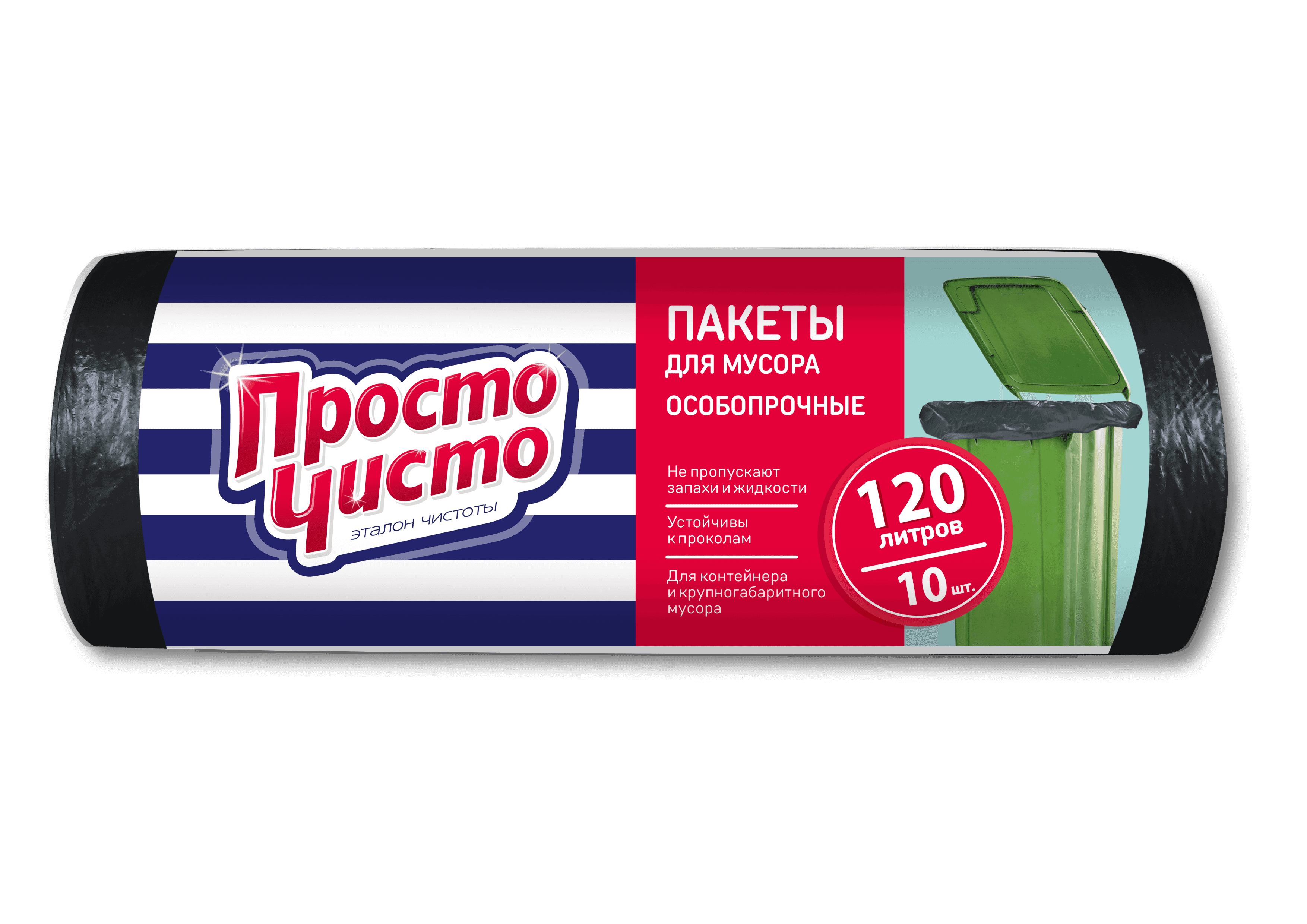 ПРОСТО ЧИСТО Пакеты для мусора особопрочные 120л 10шт