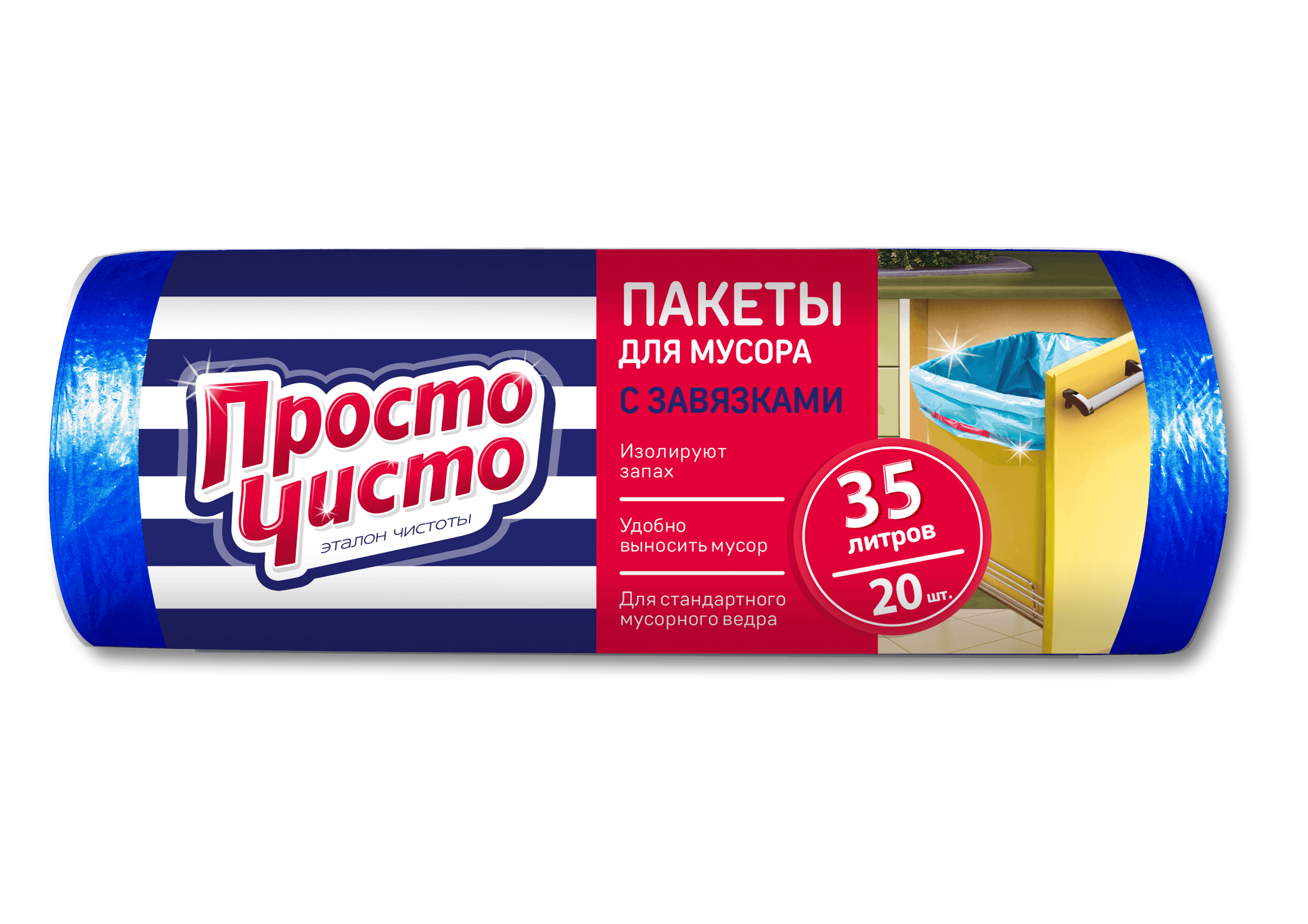 ПРОСТО ЧИСТО Пакеты для мусора с завязками 35л 20шт