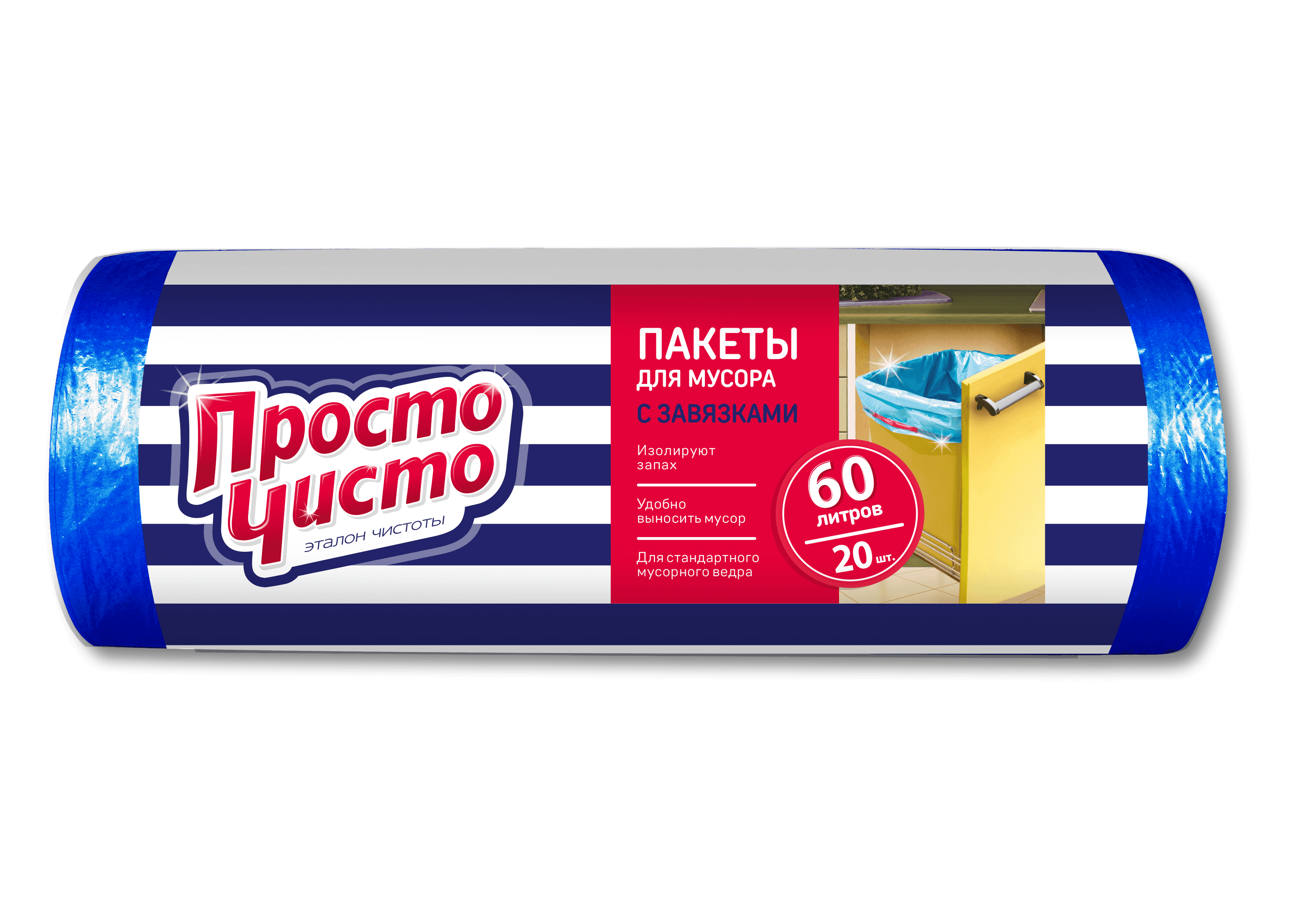 ПРОСТО ЧИСТО Пакеты для мусора с завязками 60л 20шт