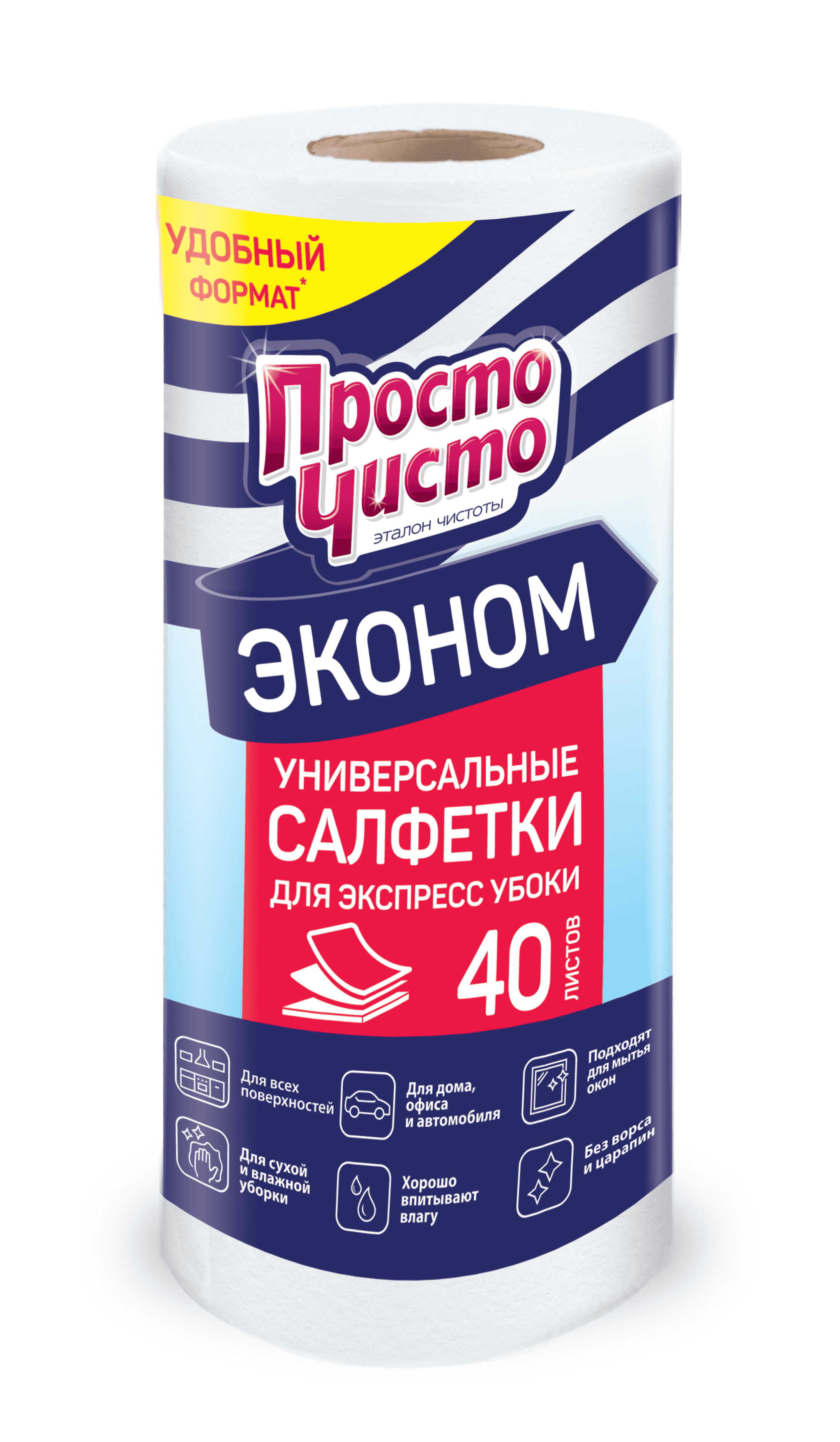 ПРОСТО ЧИСТО ЭКОНОМ Салфетки для сухой и влажной уборки хозяйственные рулон 40шт
