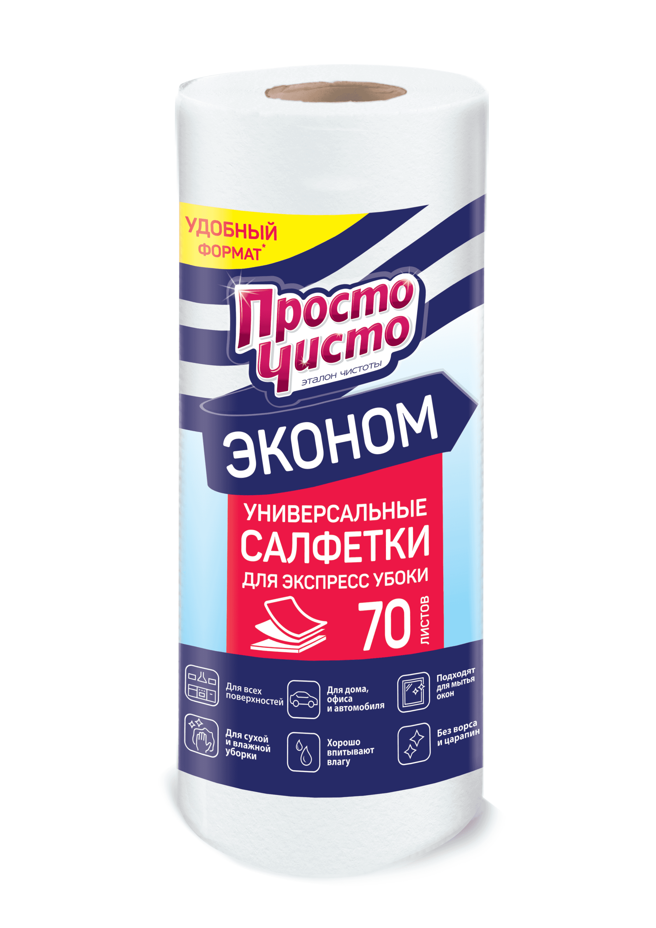 ПРОСТО ЧИСТО Салфетки хозяйственные для сухой и влажной уборки рулон 70шт