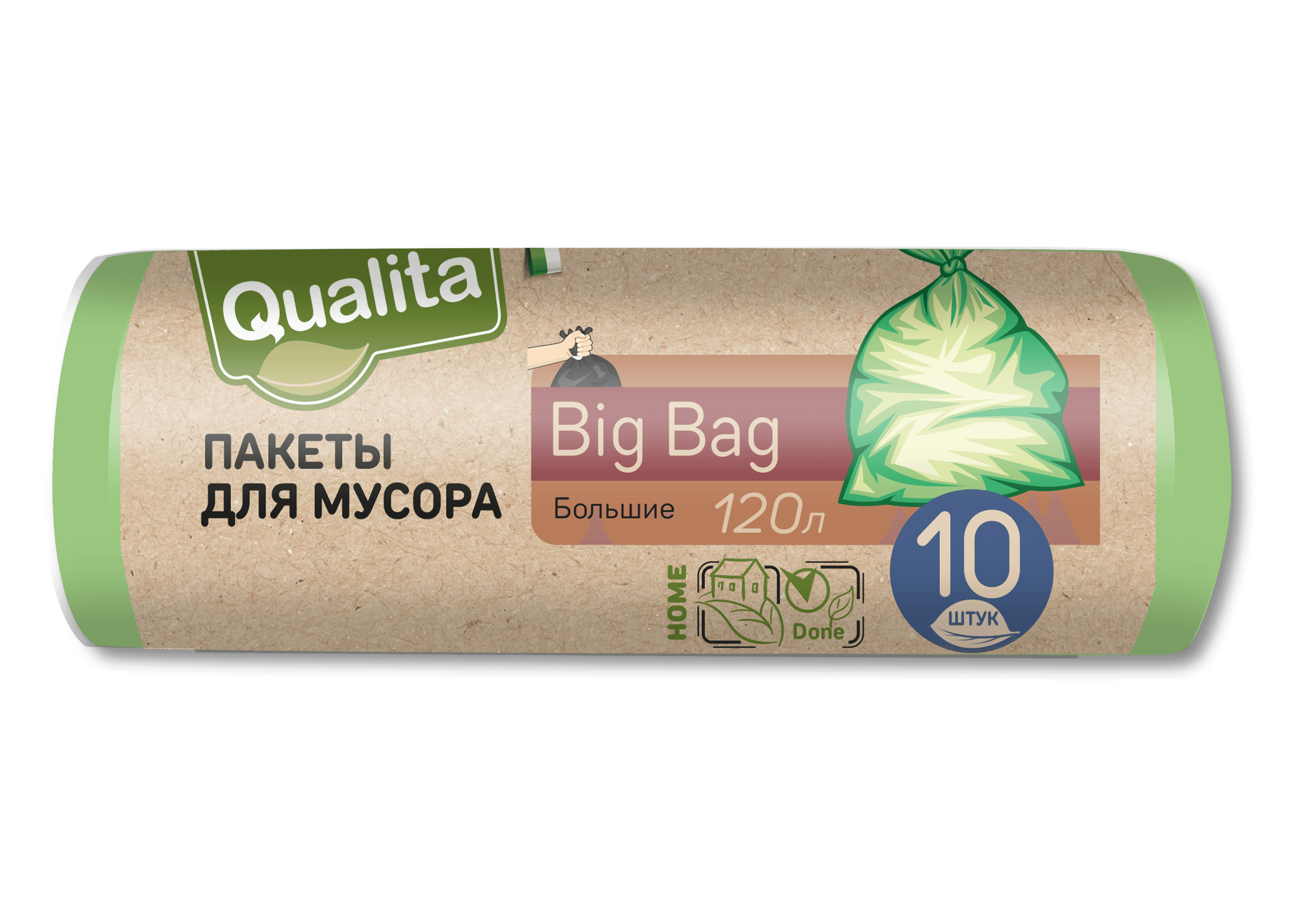 QUALITA Пакеты для мусора с затяжками 60л 10шт