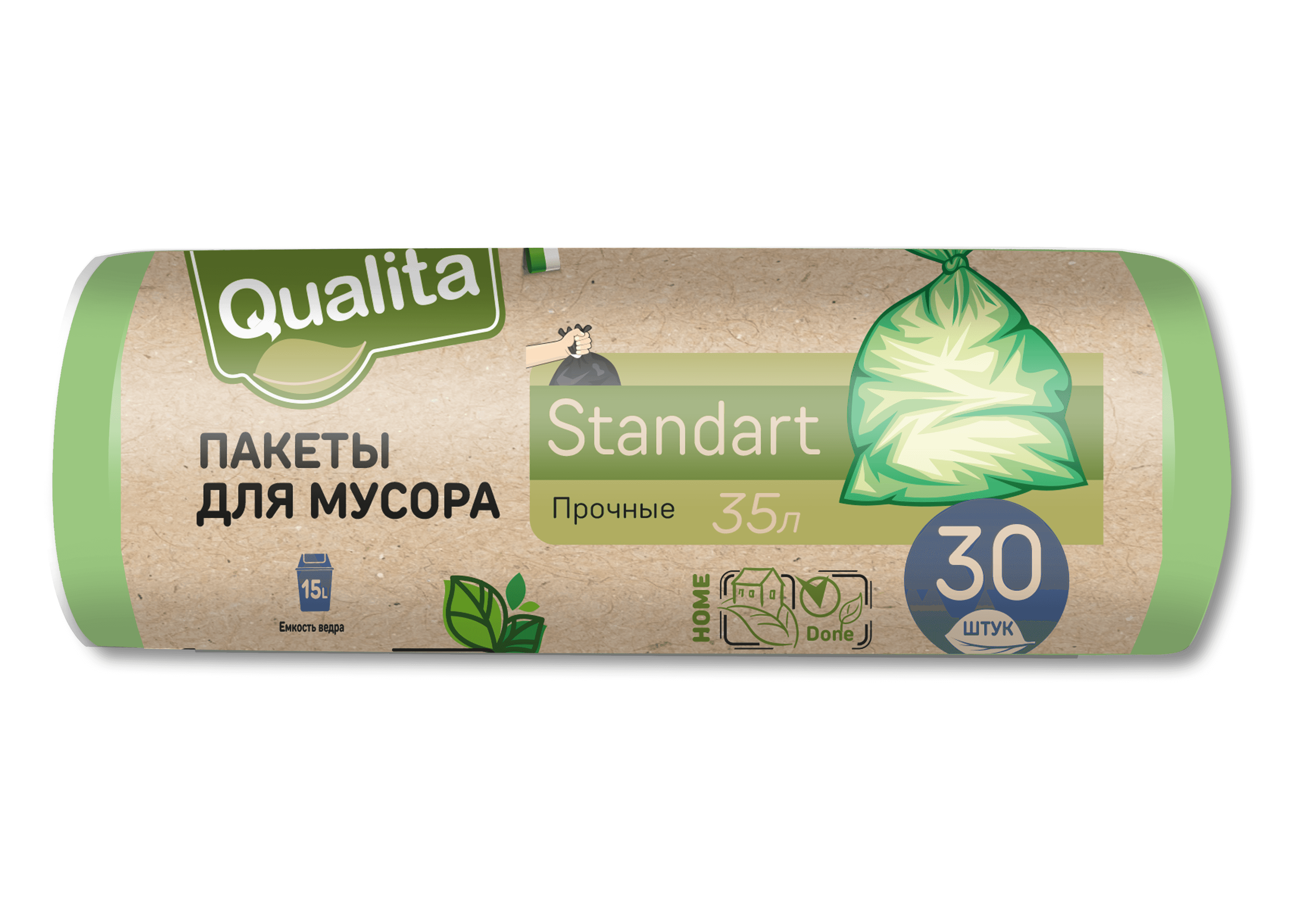 QUALITA Пакеты для мусора с затяжками 35л 15шт
