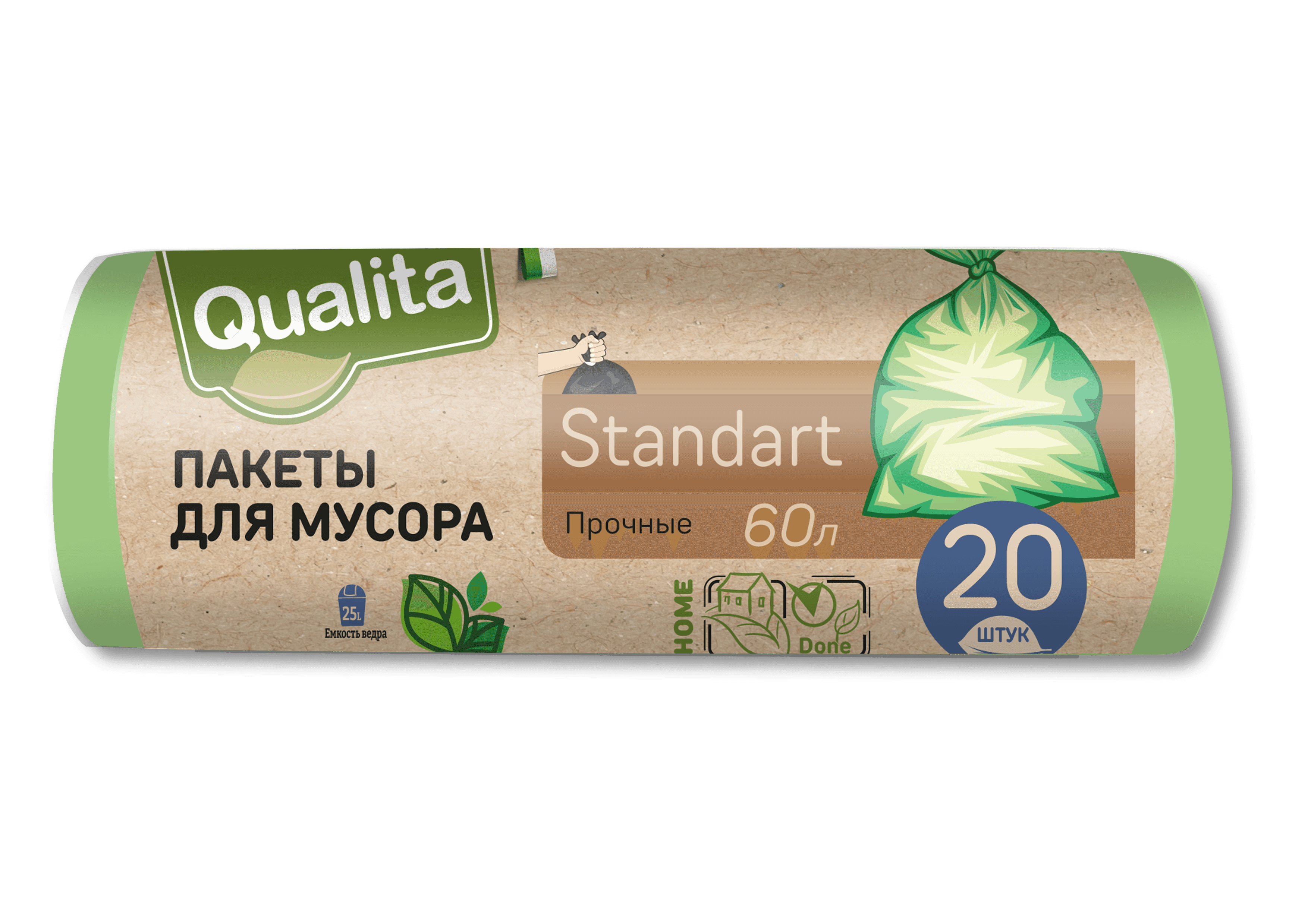 QUALITA Пакеты для мусора с ушками 60л 20шт