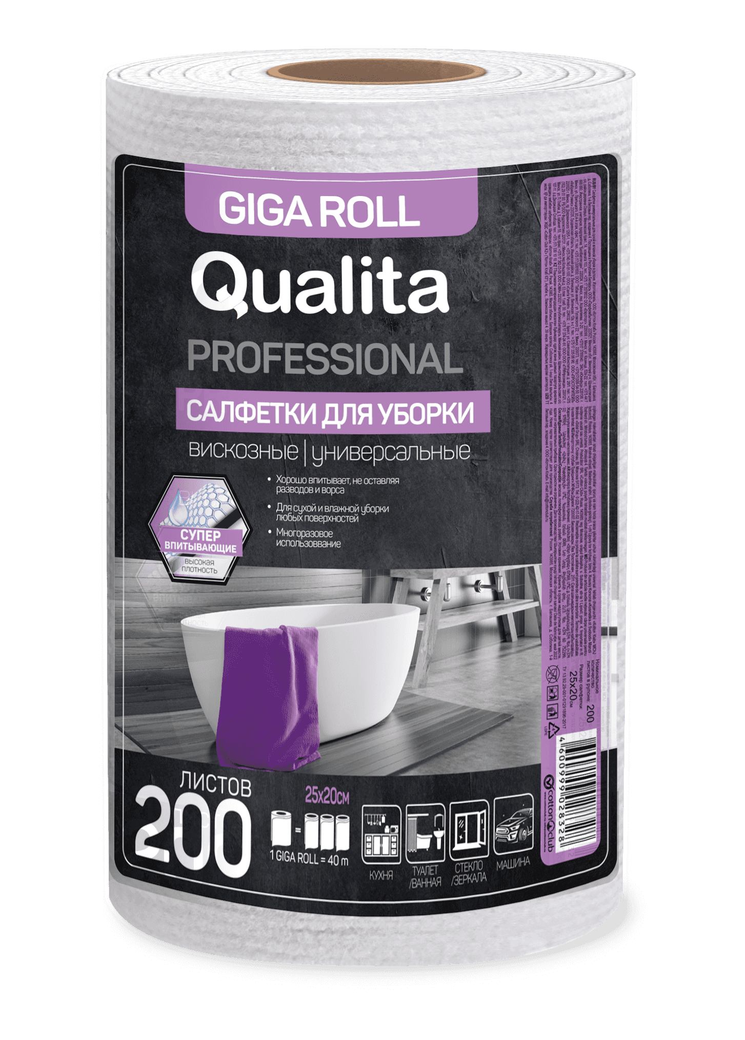 QUALITA Салфетки вискозные в рулоне 120шт КК/12