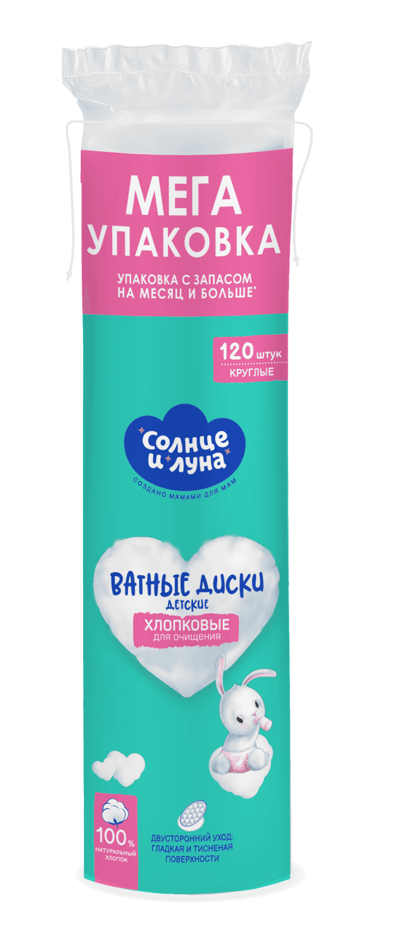 СОЛНЦЕ И ЛУНА Ватные диски для детей 120шт