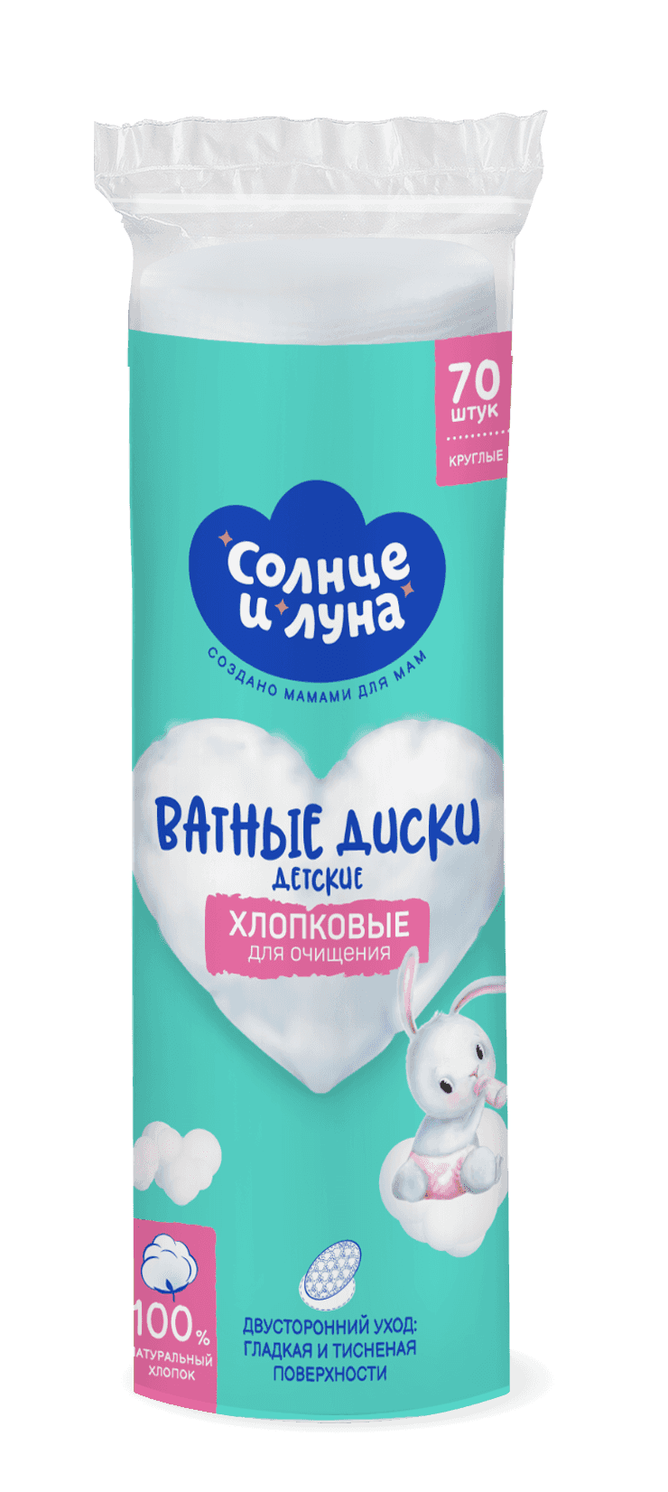 СОЛНЦЕ И ЛУНА Ватные диски для детей 70шт