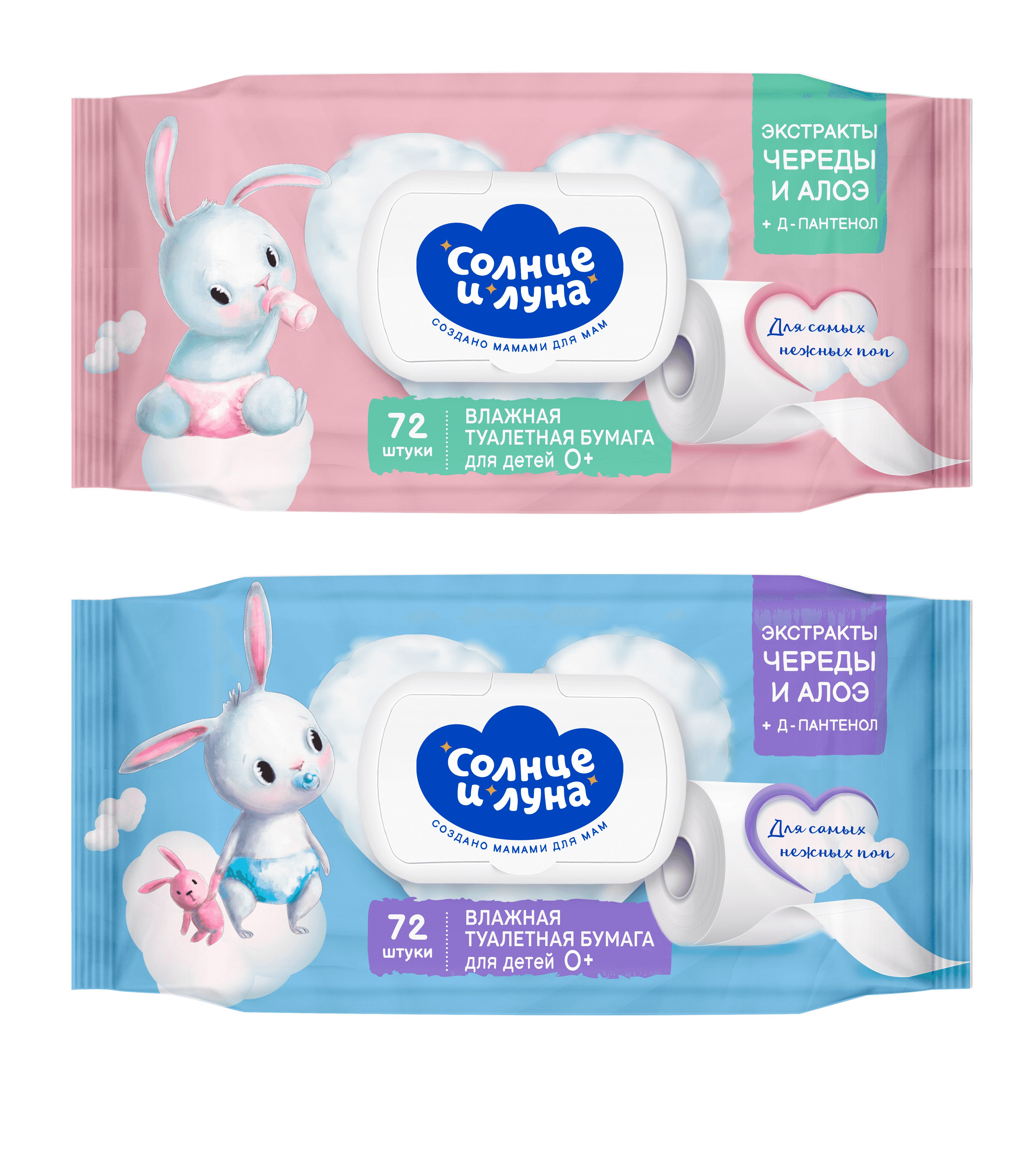 СОЛНЦЕ И ЛУНА Влажная бумага туалетная для детей с экстрактом череды 72шт