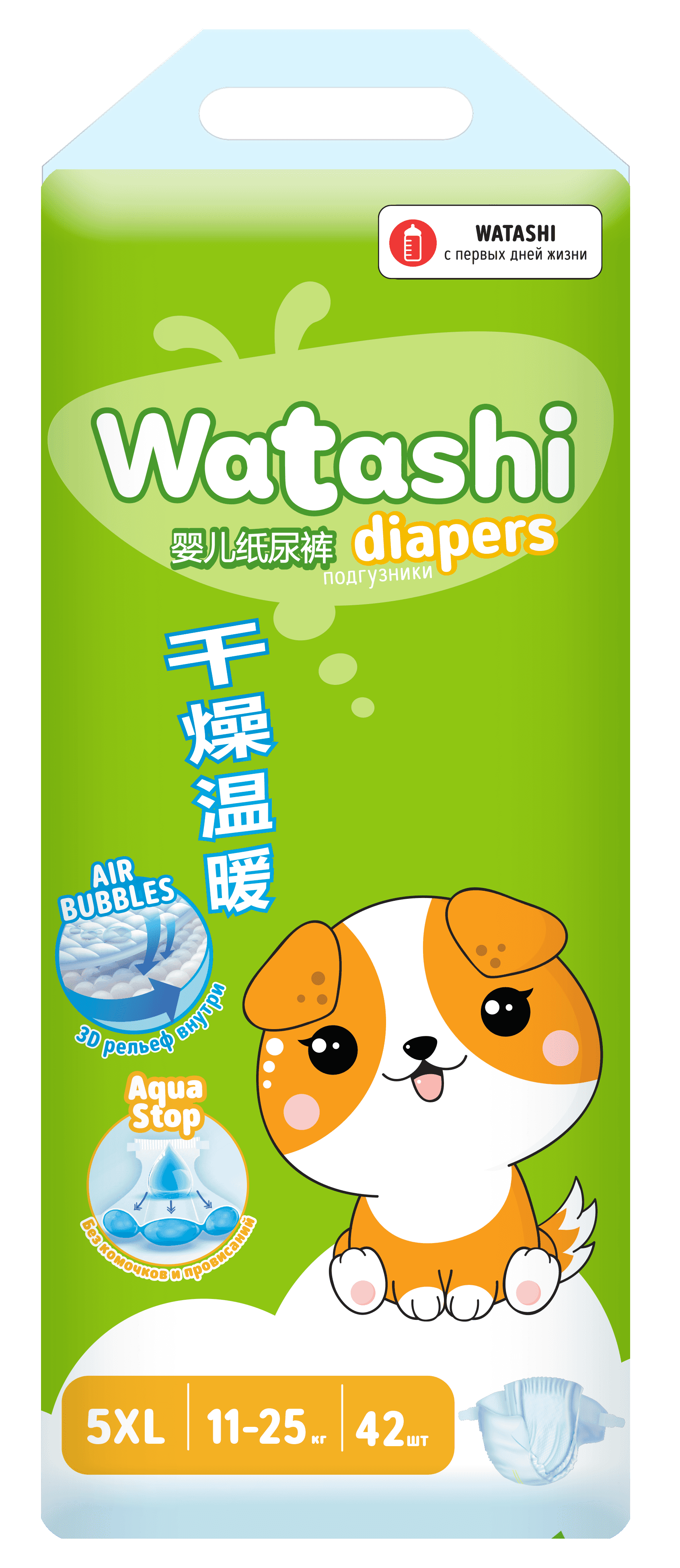 WATASHI Подгузники одноразовые для детей 5/XL 11-25 кг jambo-pack 42шт КК/2