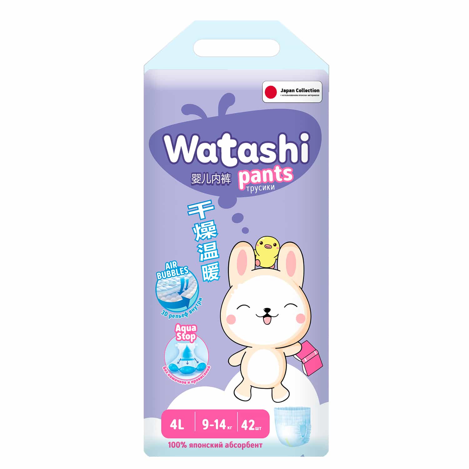 WATASHI Трусики-подгузники одноразовые для детей 4/L 9-14 кг jambo-pack 42шт КК/2