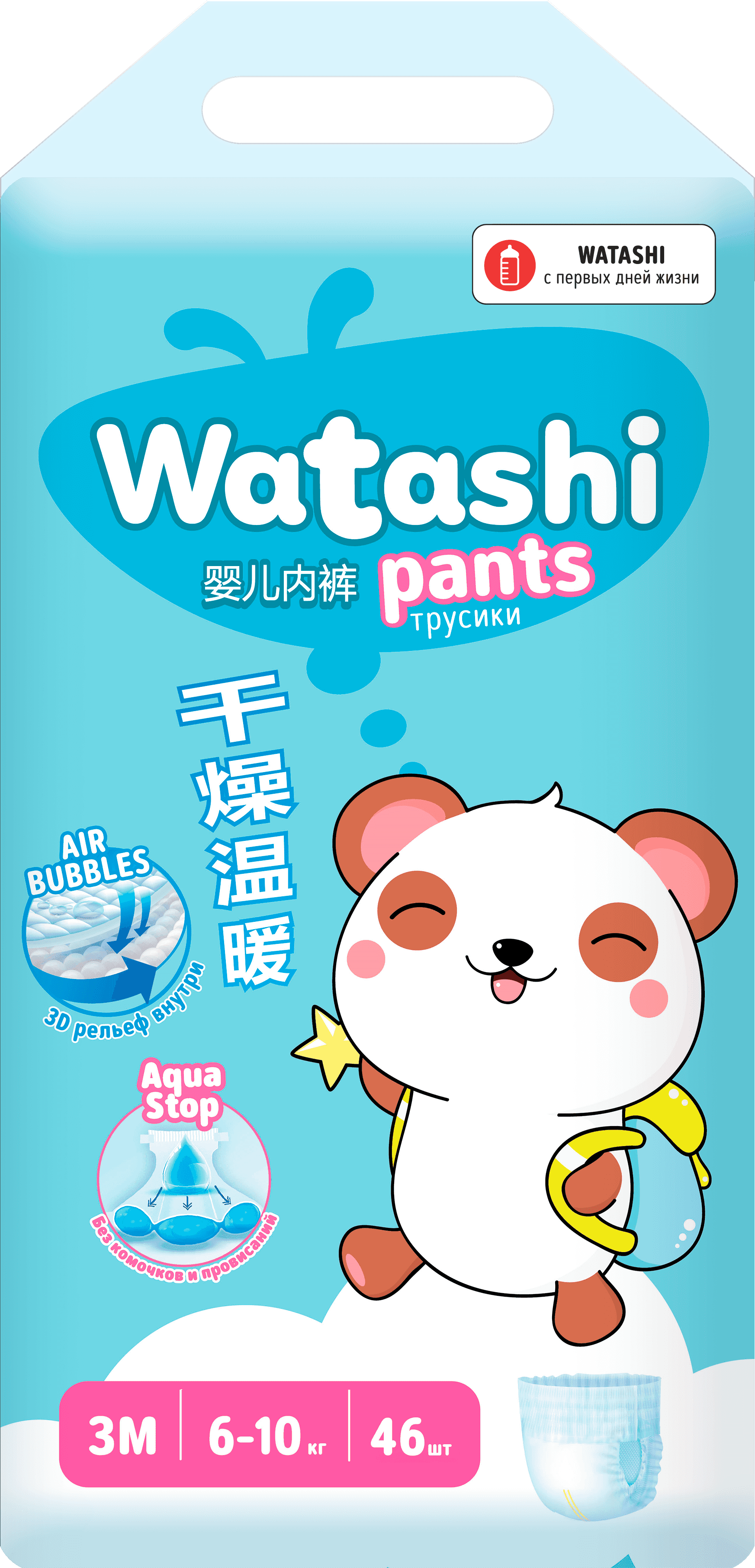 WATASHI Трусики-подгузники одноразовые для детей 3/М 6-10 кг jambo-pack 46шт КК/2