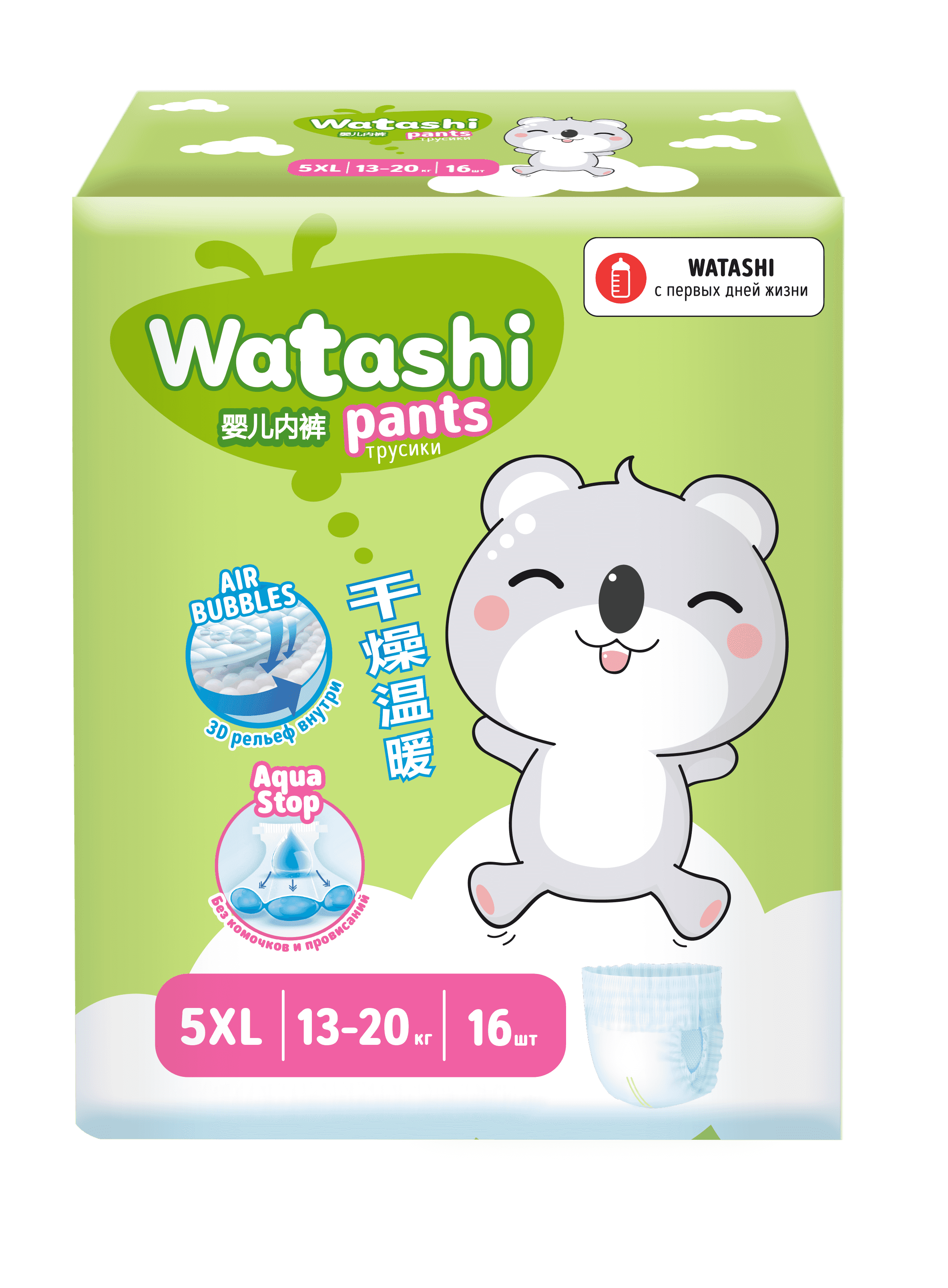 WATASHI Трусики-подгузники одноразовые для детей 5/XL 13-20 кг small-pack 16шт КК/4