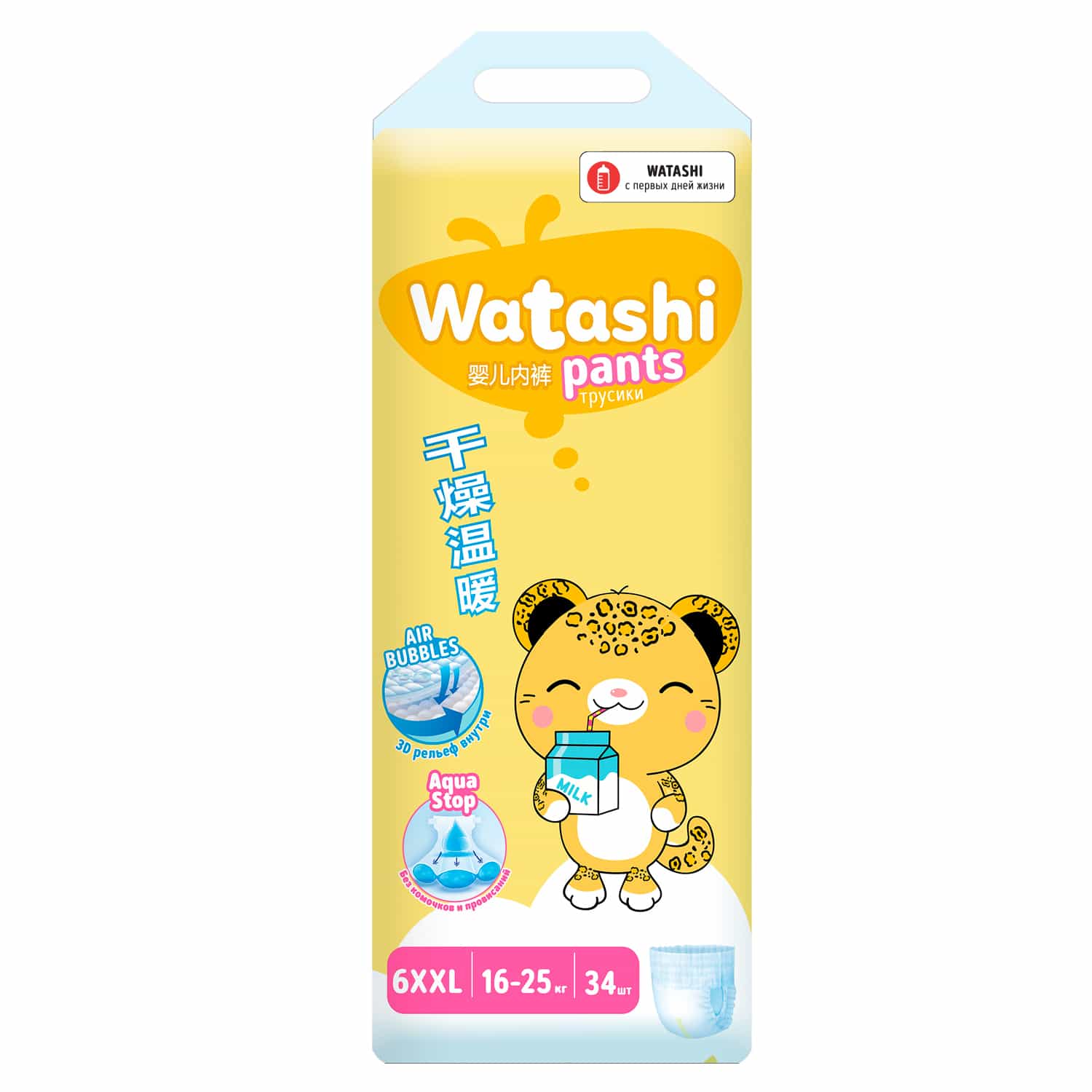WATASHI Трусики-подгузники одноразовые для детей 6/XXL 16-25 кг jambo-pack 34шт КК/2