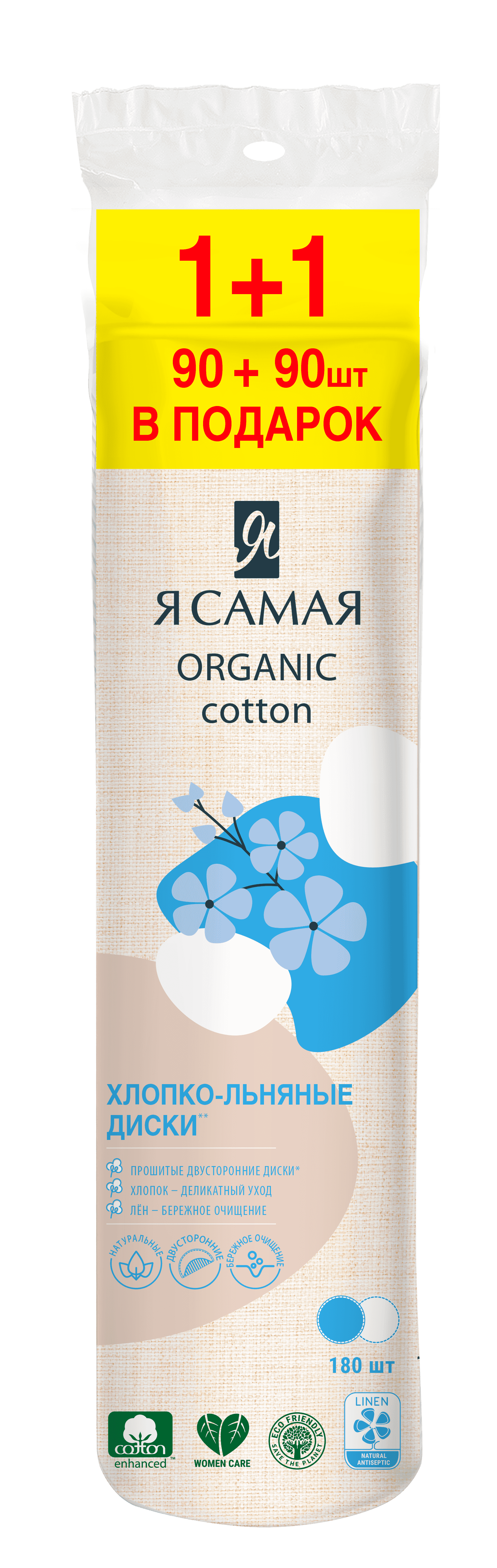 Я САМАЯ Ватные диски со льном Organic Cotton ПРОМО 90+90шт