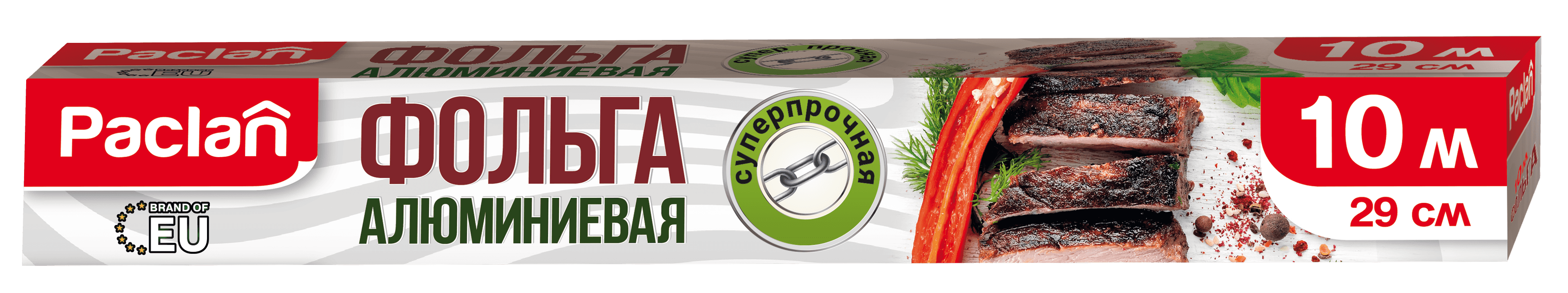 Paclan фольга алюминиевая 10м х 29см в рулоне, 13 мкм