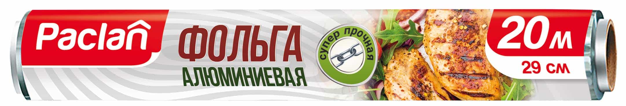 Paclan фольга алюминиевая 20м х 29см в рулоне, 9 мкм