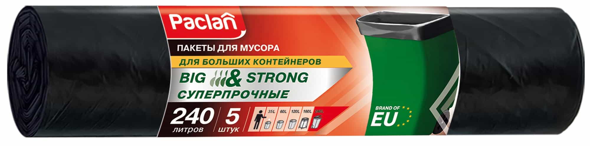 Paclan мешки для мусора Big&Strong 240 л, 90х140 см, 20 шт, 40 мкм, черные