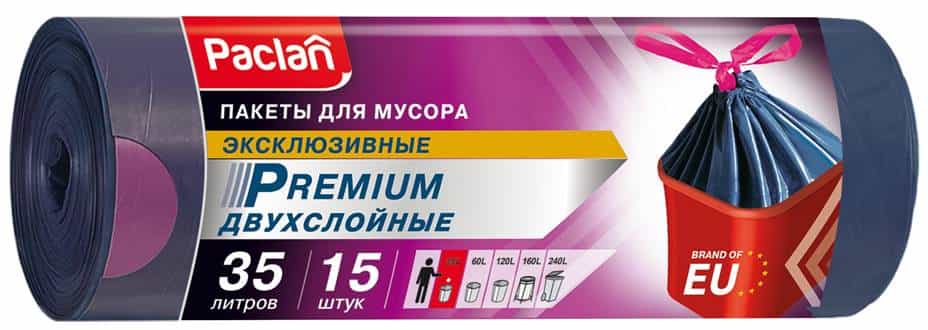 Paclan мешки для мусора с тесьмой Premium 35 л, 53х60 см, 15 шт, 30 мкм