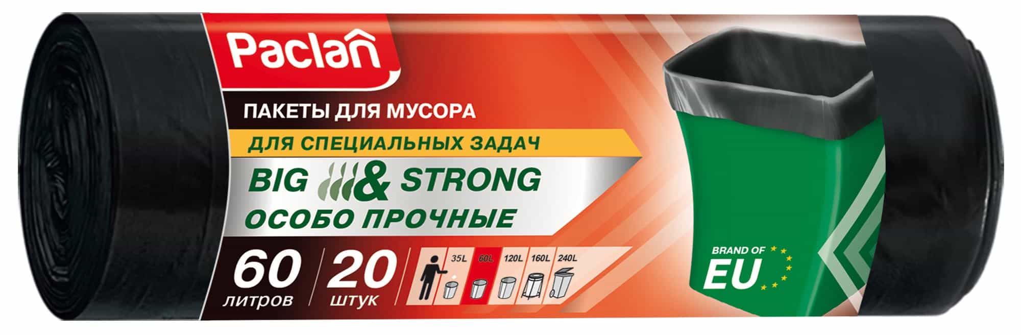 Paclan мешки для мусора Big&Strong 60 л, 68х80 см, 20 шт, 21 мкм, черные