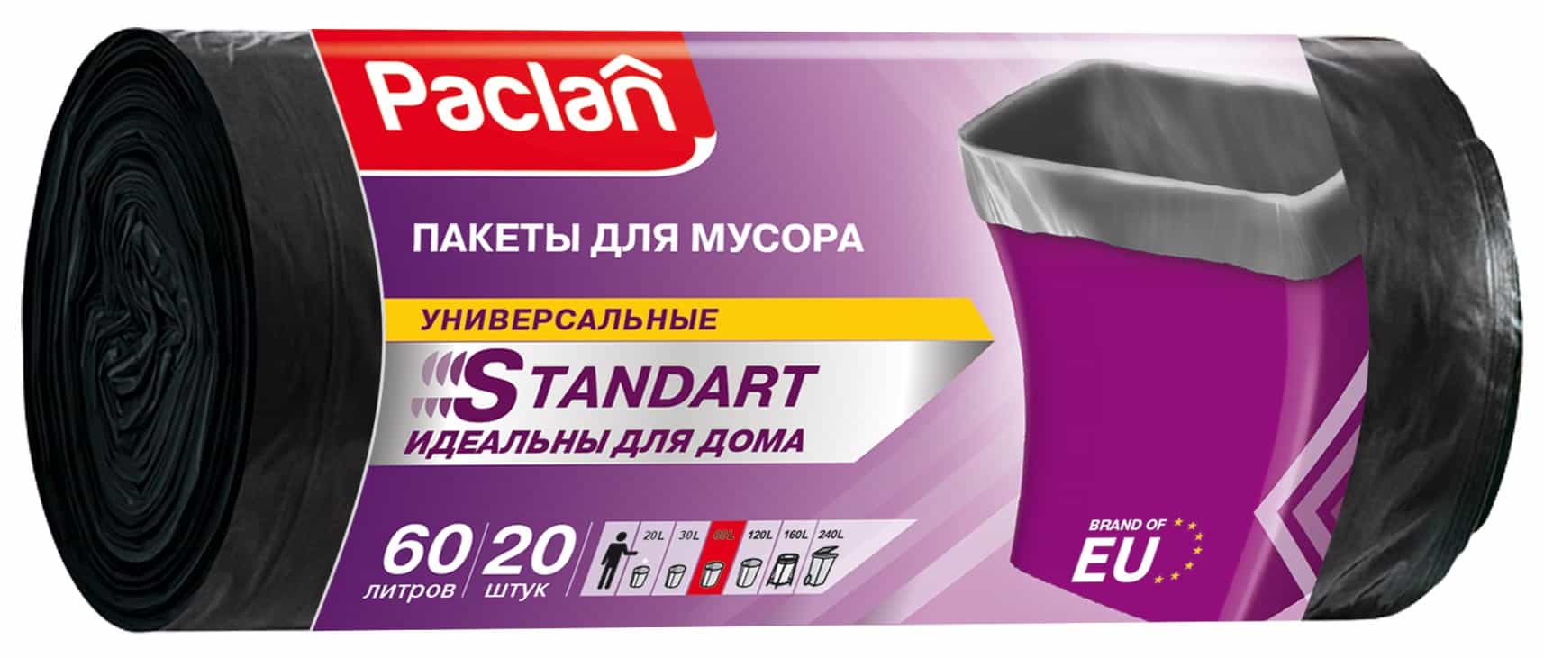 Paclan мешки для мусора Standart 60 л, 60х72 см, 20 шт, 8 мкм