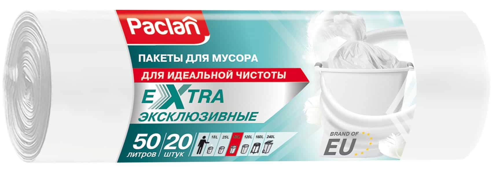 Paclan мешки для мусора Extra 50 л, 60х72 см, 20 шт
