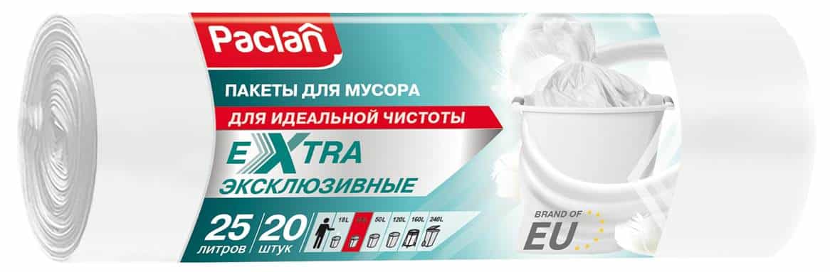 Paclan мешки для мусора Extra 25 л, 50х60 см, 20 шт