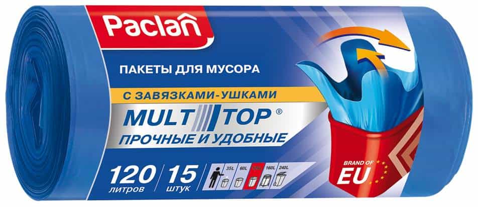 Paclan мешки для мусора Multi-Top 120 л, 70х112 см, 15 шт, 25 мкм
