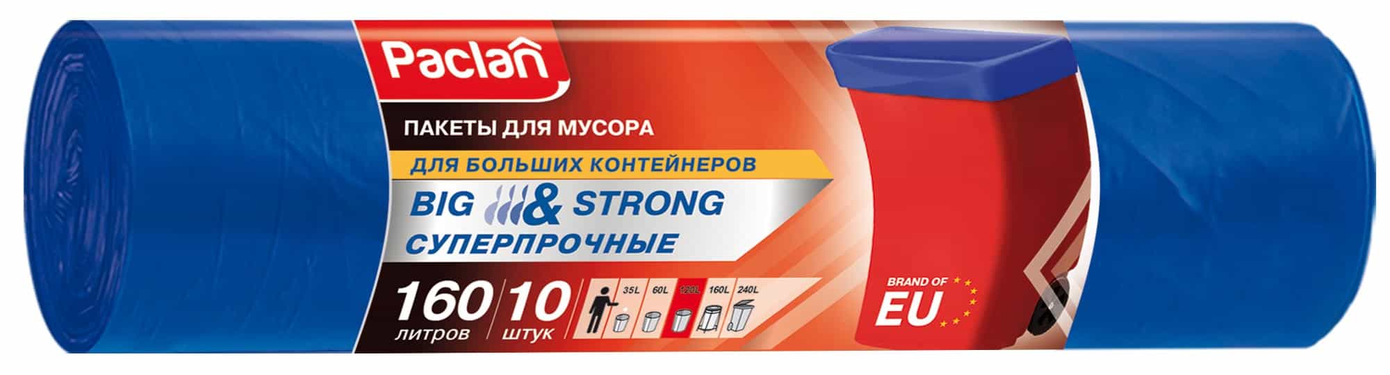 Paclan мешки для мусора Big&Strong 160 л, 87х120 см, 10 шт, 26 мкм, голубые