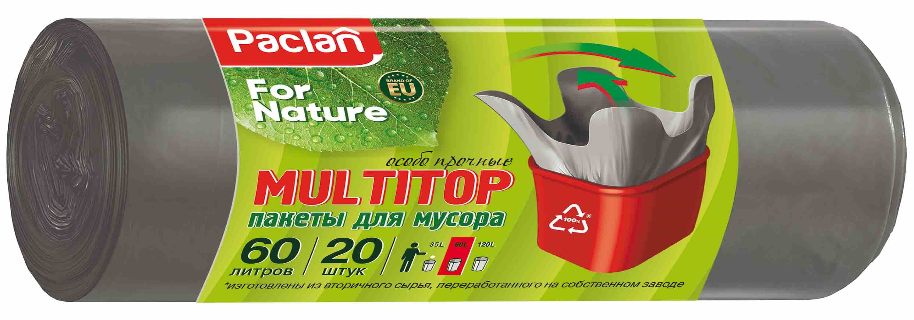 Paclan For Nature мешки для мусора Multi-Top 60 л, 20 шт