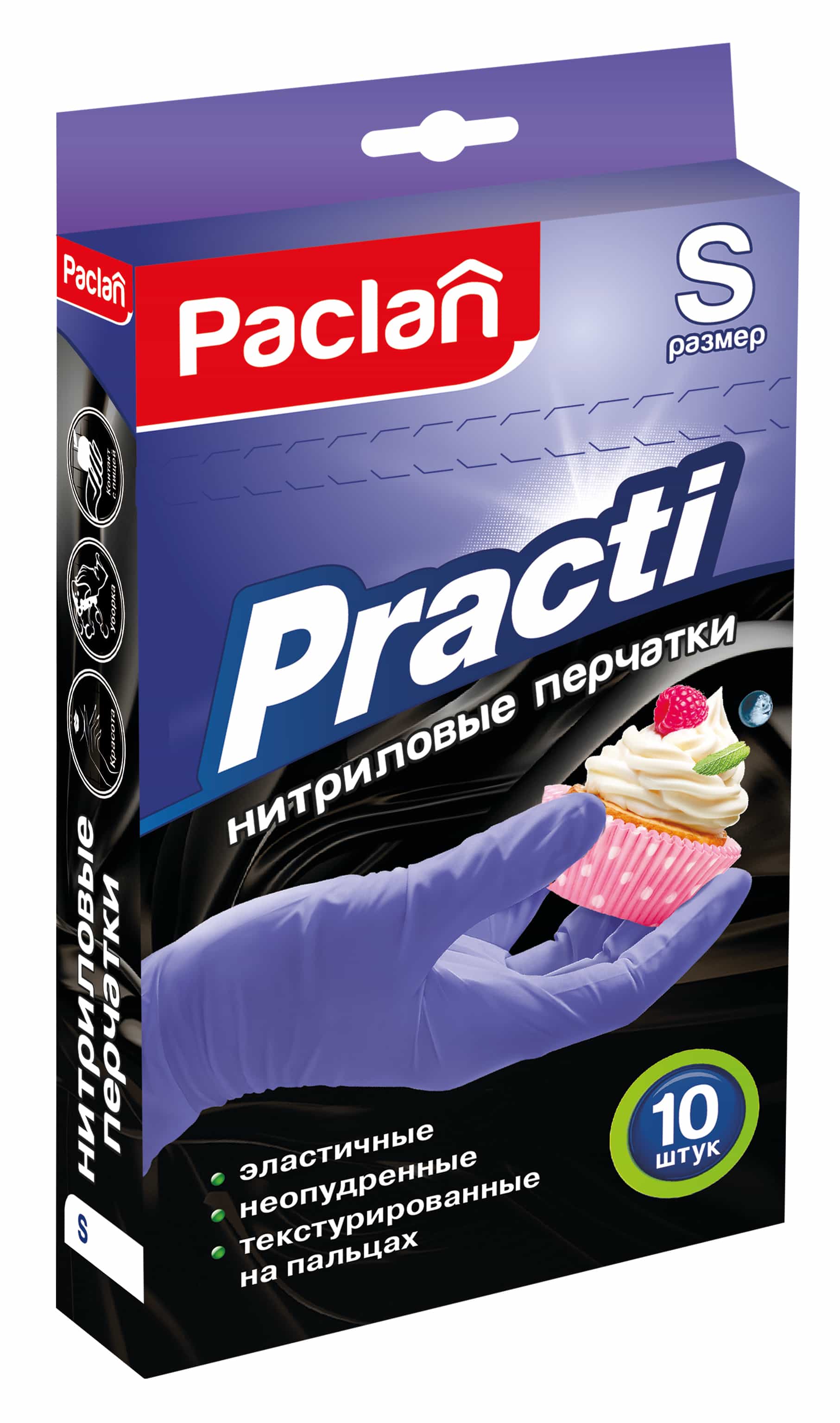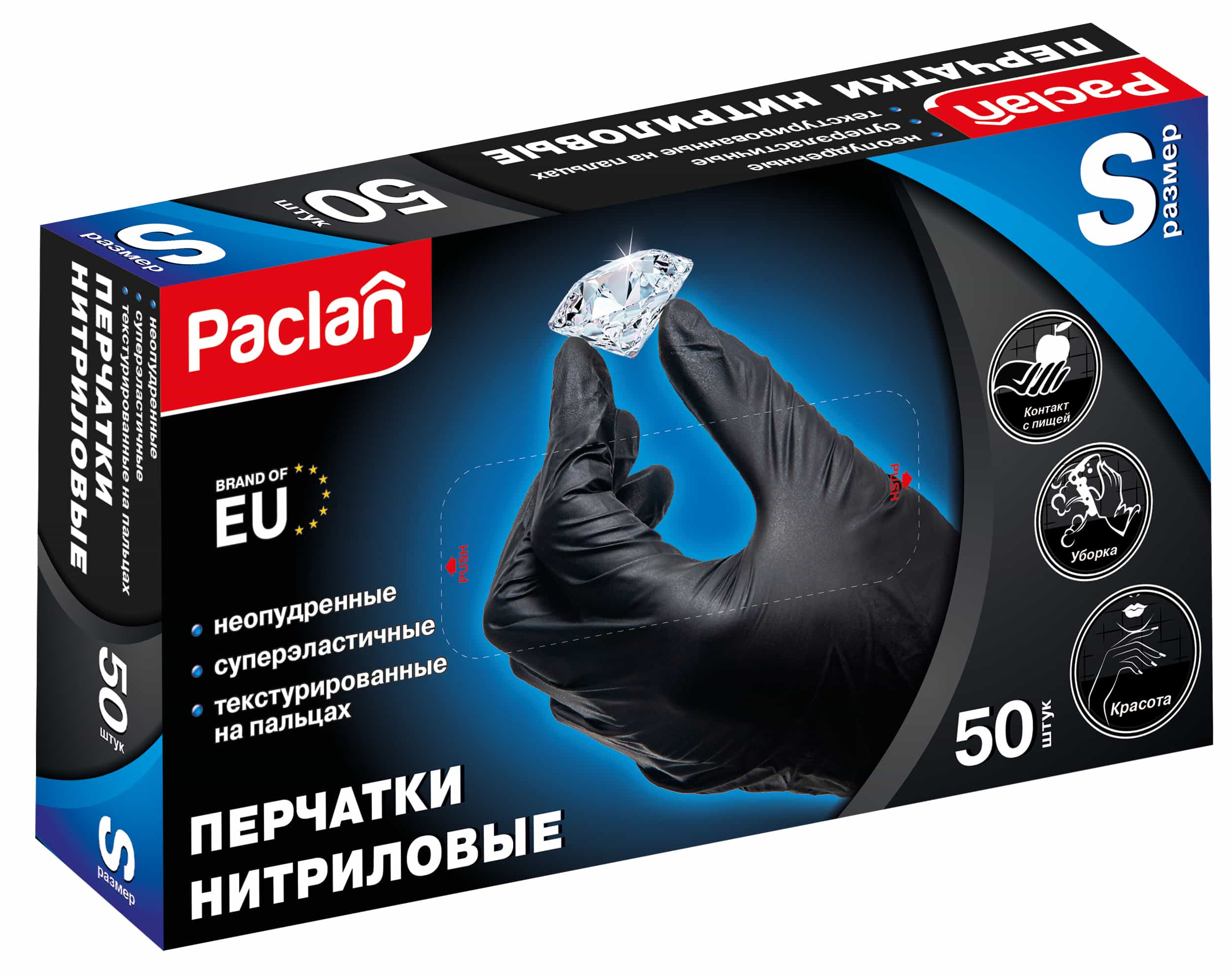 Paclan Practi перчатки нитриловые черные S, 50 шт