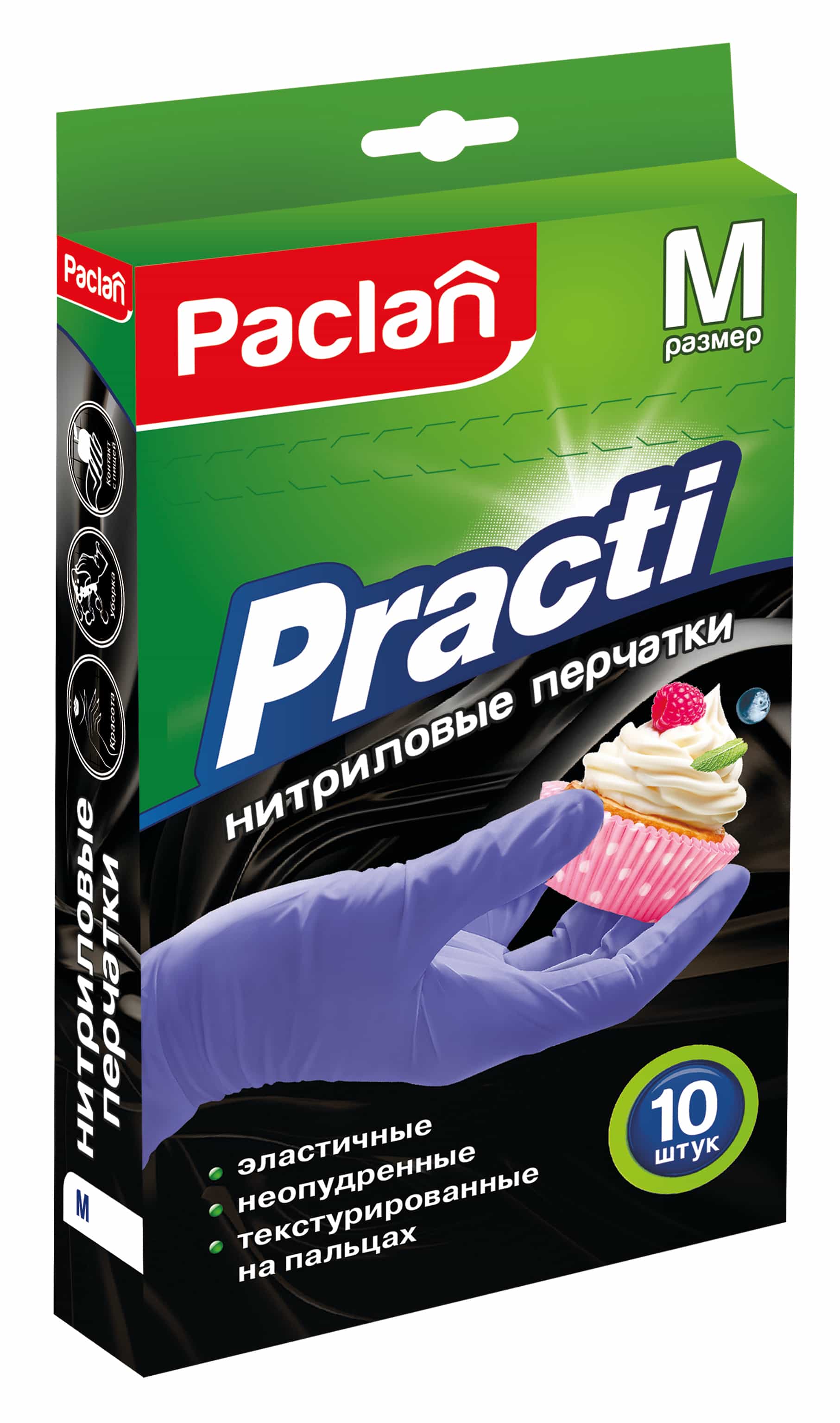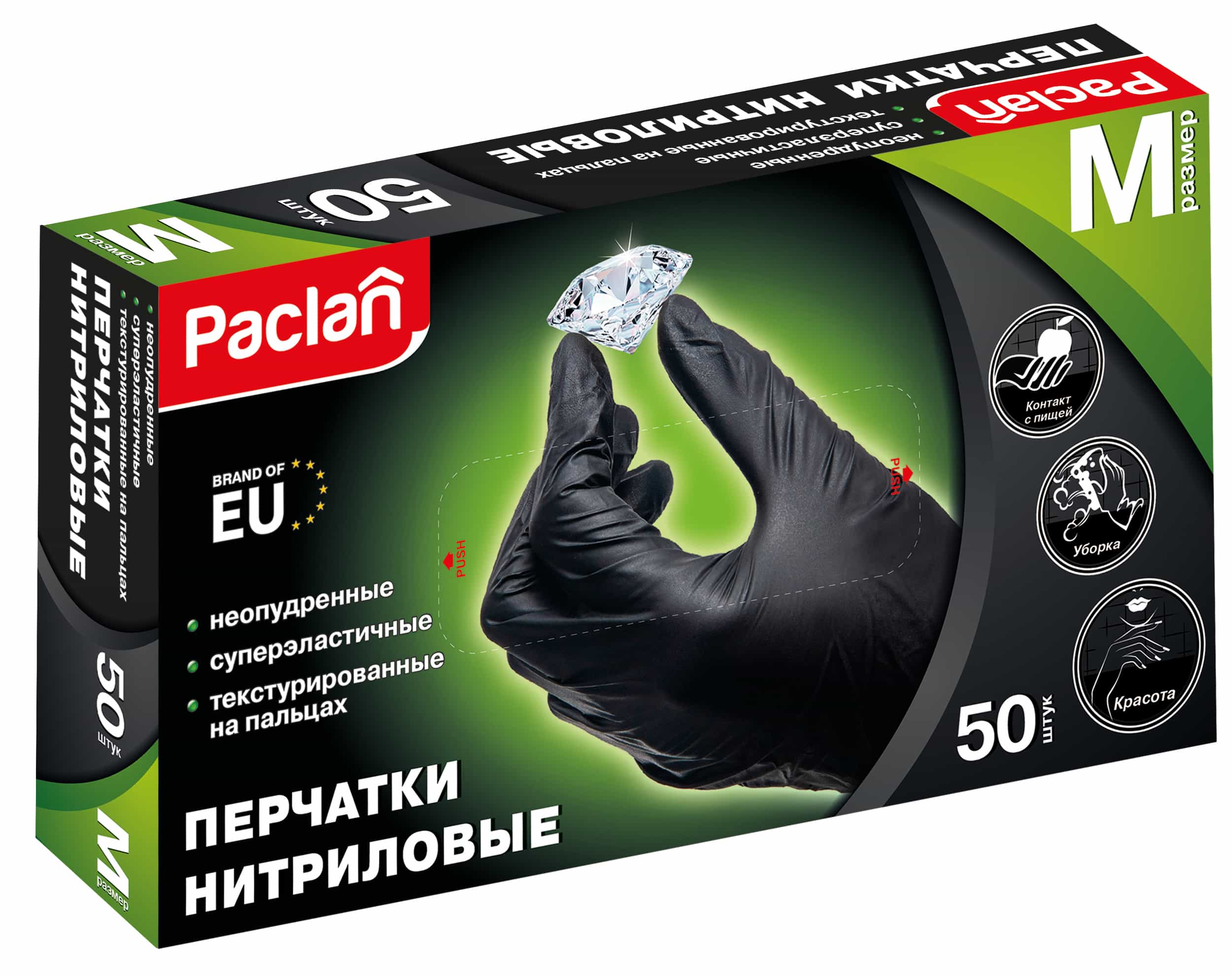 Paclan Practi перчатки нитриловые черные M, 50 шт