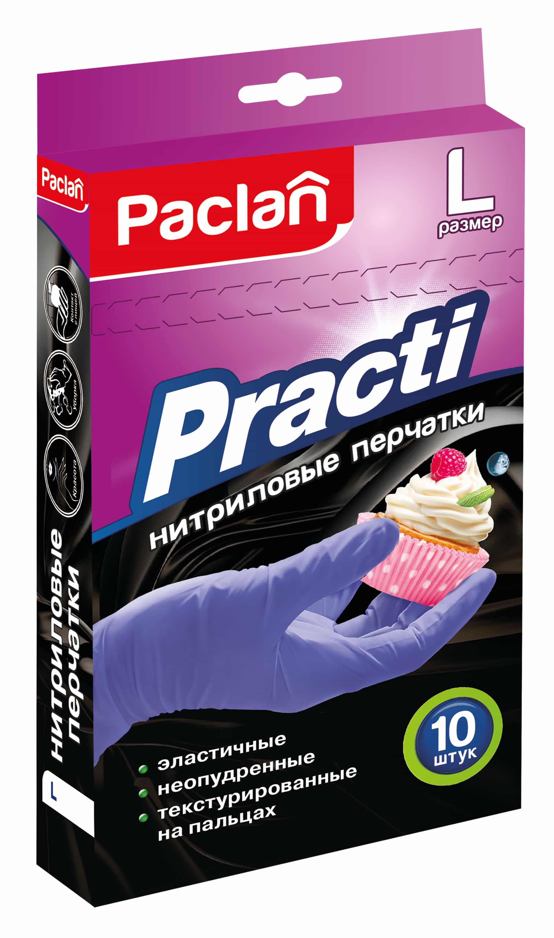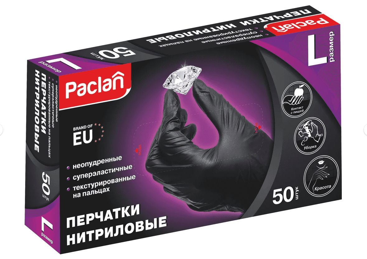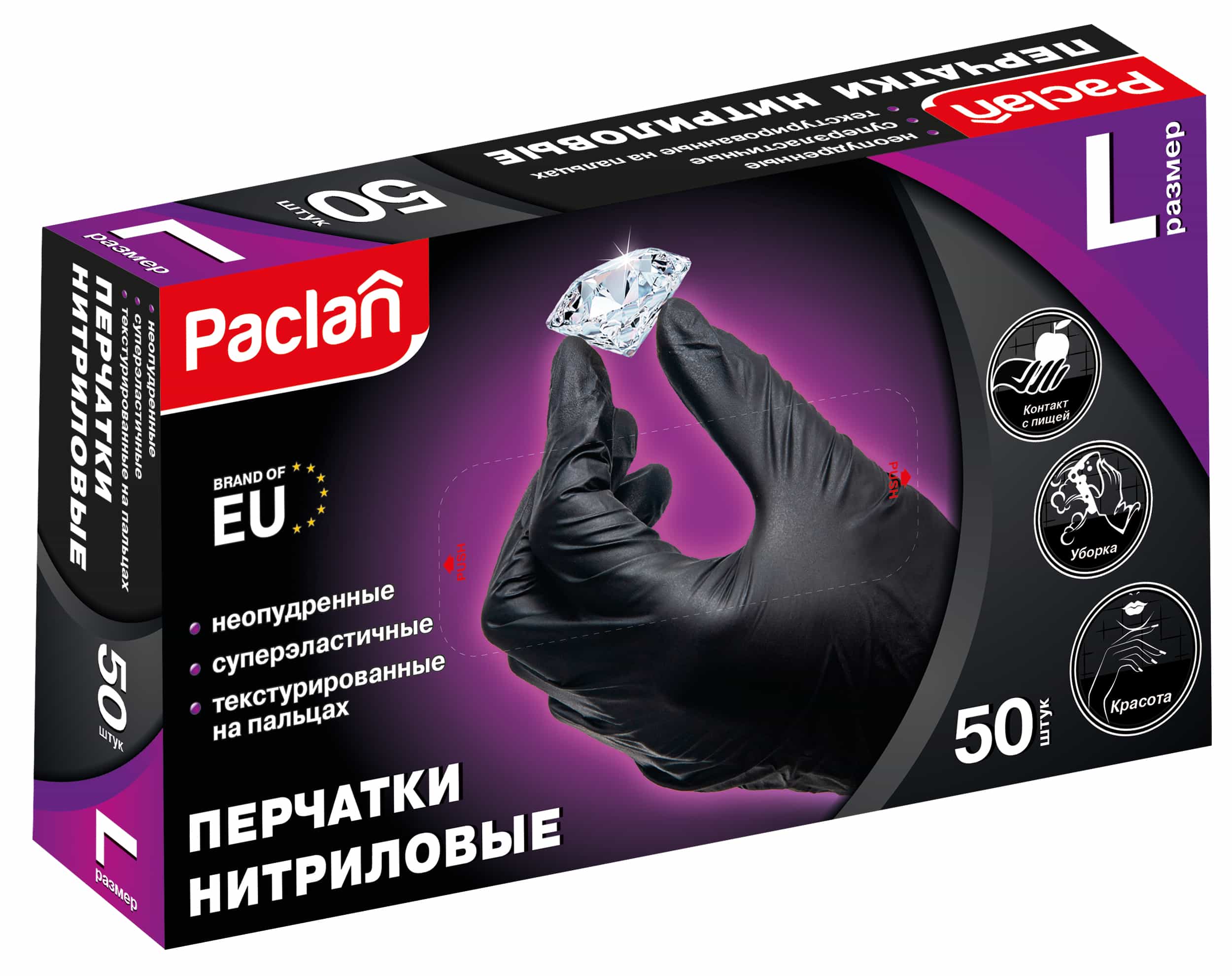 Paclan Practi перчатки нитриловые черные L, 50 шт