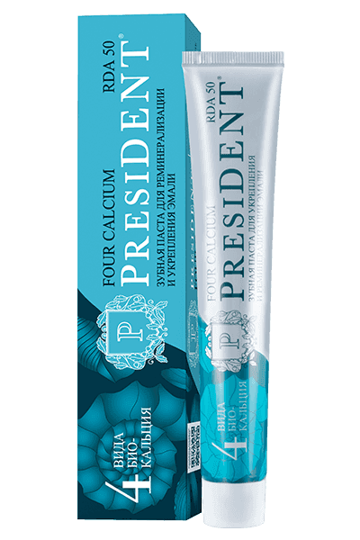 PRESIDENT зубная паста Four Calcium укрепление эмали (50 RDA)75г