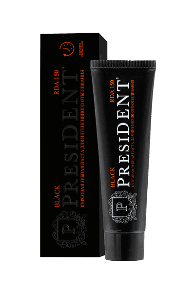 PRESIDENT зубная паста Black интенсивное отбеливание (150 RDA) 50мл