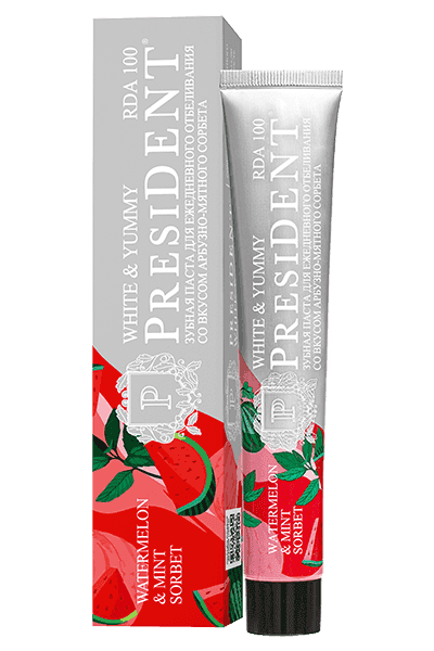 PRESIDENT зубная паста White&Yummy ежедневное отбеливание Арбузно-мятный сорбет (100 RDA) 75г