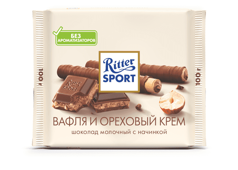 Ritter Sport "ВАФЛЯ И ОРЕХОВЫЙ КРЕМ" шоколад молочный с начинкой 100гр