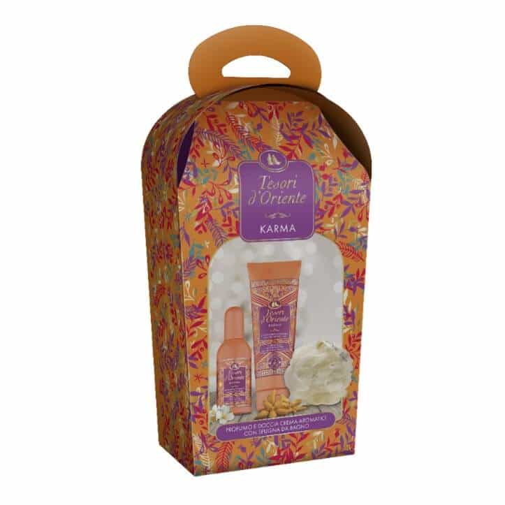 Tesori Подарочный набор туалетная вода 100мл, гель-душ 250мл, губка "Карма"