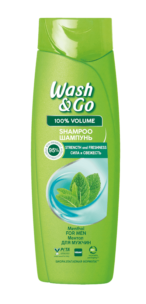 Wash&Go шампунь 360мл с ментолом для мужчин