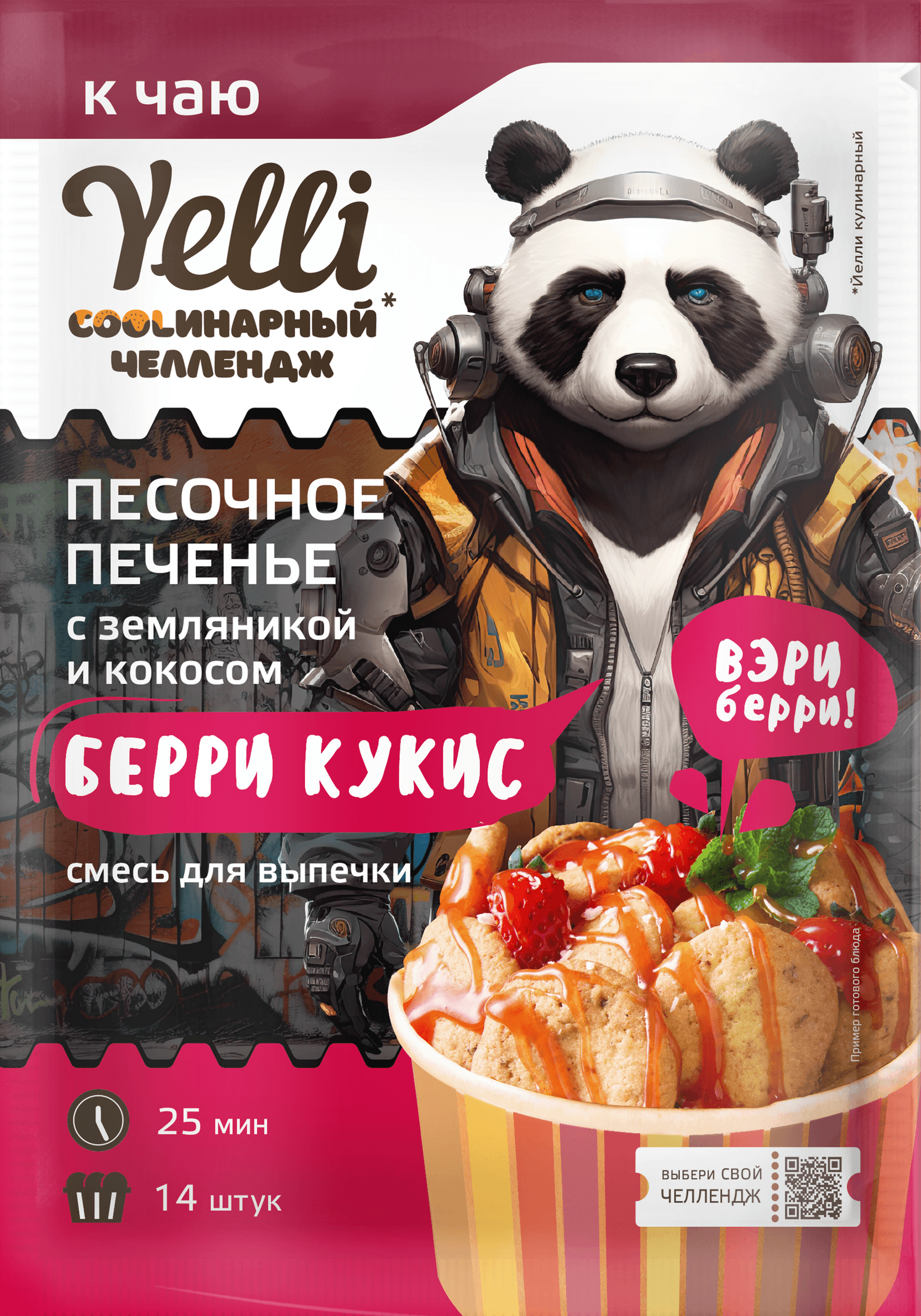 Yelli песочное печенье БЕРРИ КУКИС с земляникой и кокосом Смесь для выпечки 130г